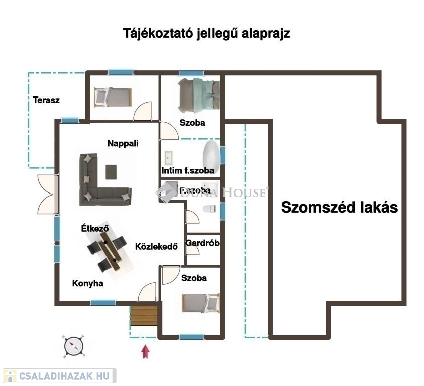 A családi ház társasházi alapító okirattal rendelkezik, így lakásnak minősül, közös fala csak a cirkóhelyiség fala.