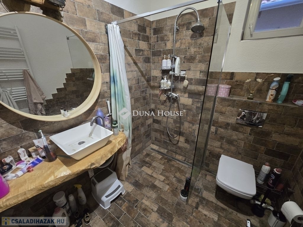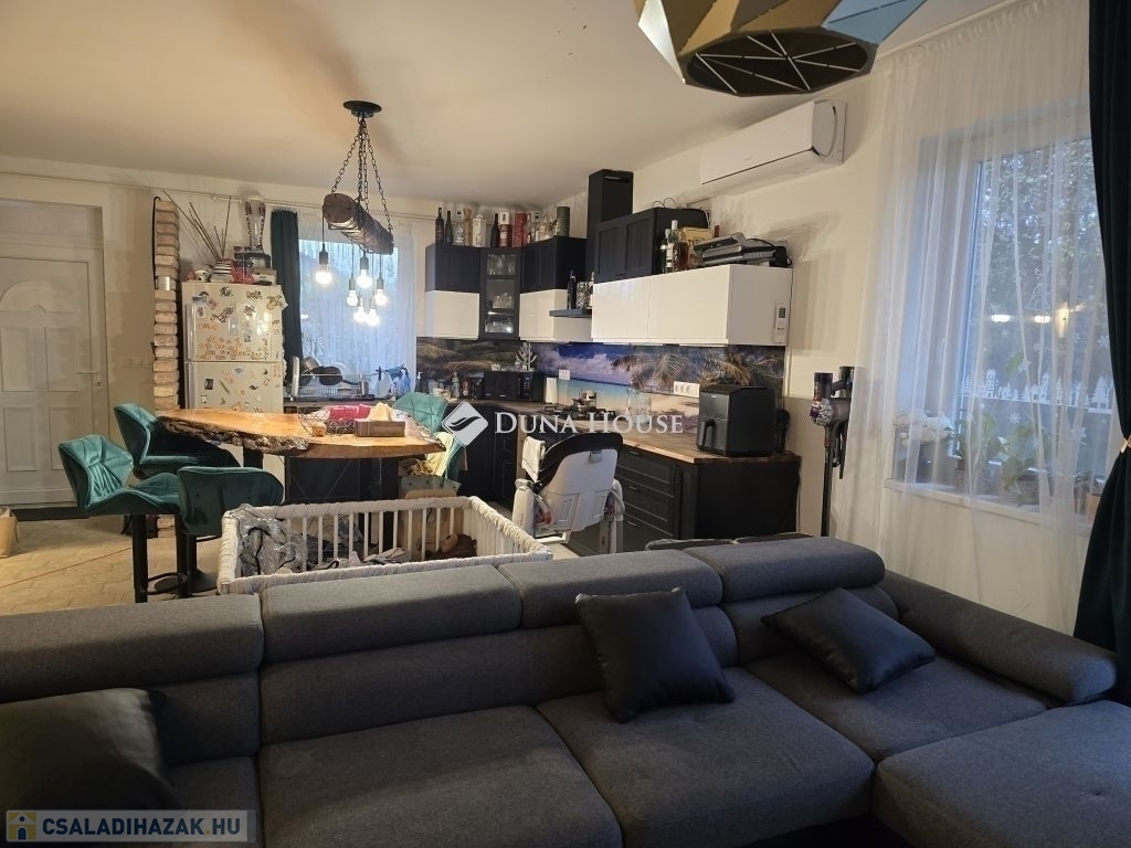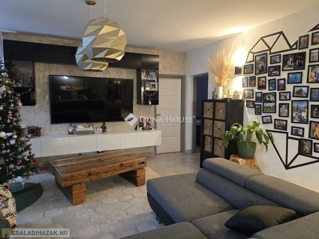 A 94 nm-es ingatlan téglából épült, telek mérete 804 nm, 15 cm-es külső -és födém szigeteléssel, betoncserép fedéssel.