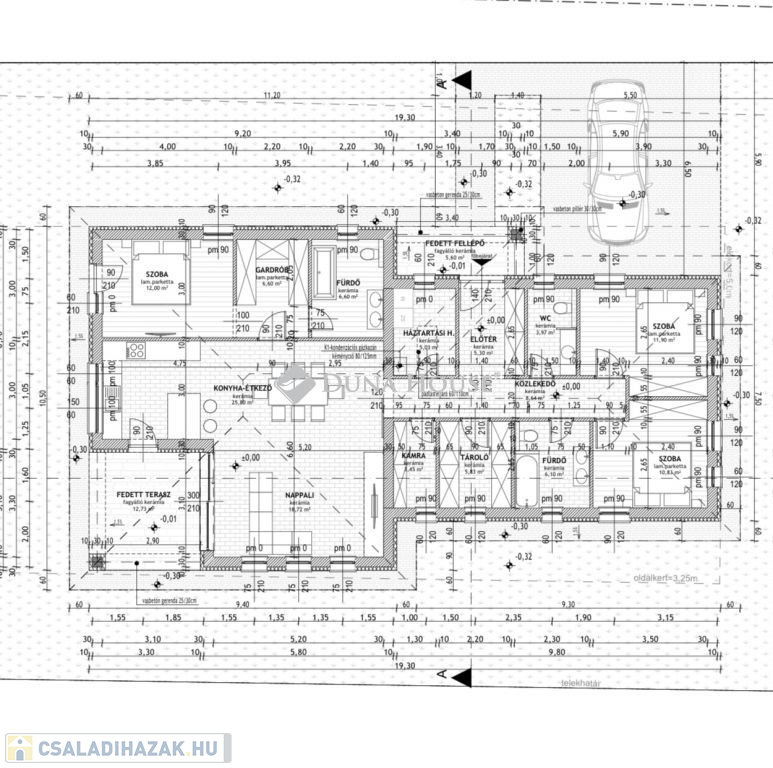 Műszaki paraméterek:Az ingatlan 30 cm vastag porotherm téglafalazatú, 15 cm-es polisztirol szigeteléssel és 30 cm-es födém szigeteléssel készül.Rehau nyílászárók kerülnek beépítésre.A fűtésről kondenzációs kombinált cirkó és padlófűtés gondoskodik, emellett hűtő-fűtő klímával is felszerelt.