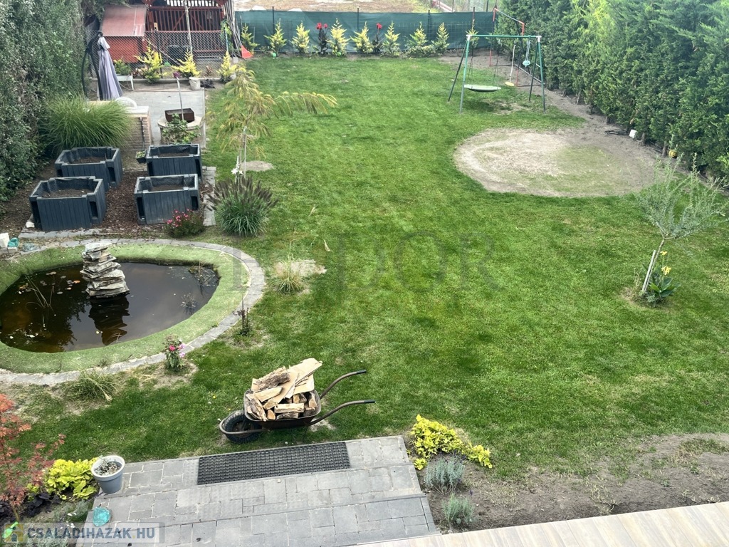 A telek igényesen parkosított, automata öntözőrendszerrel, amely fúrt kútról működik.