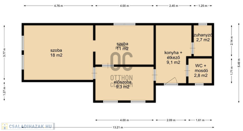 - Az ingatlanban nappali, szoba, konyha, fürdőszoba, WC került kialakításra.