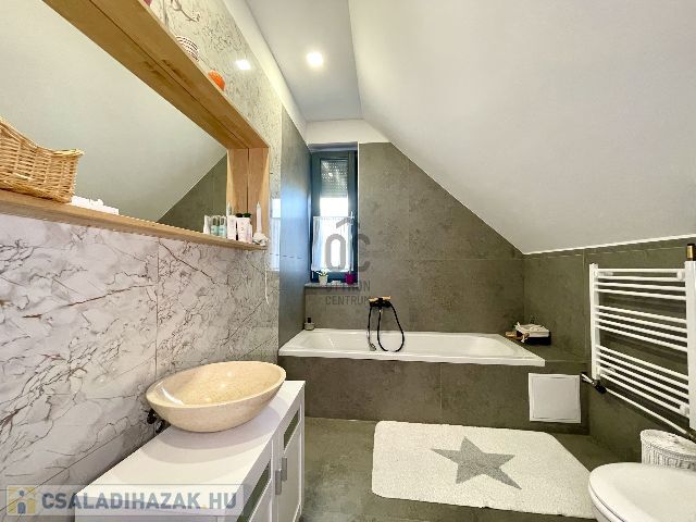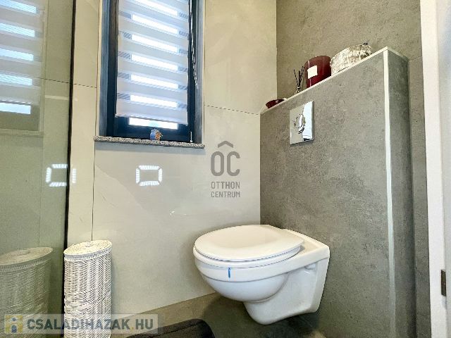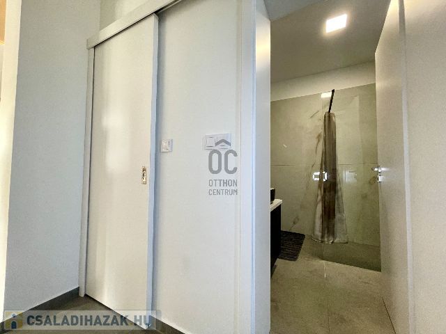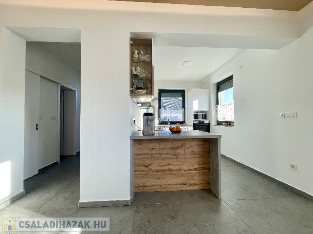 Az ingatlan földszintjén tágas, világos, dél nyugati-észak keleti tájolású amerikai konyhás nappali-étkező, fürdőszoba-wc, háztartási helyiség, az emeleti szinten pedig 3 hálószoba és fürdőszoba-wc került kialakításra.