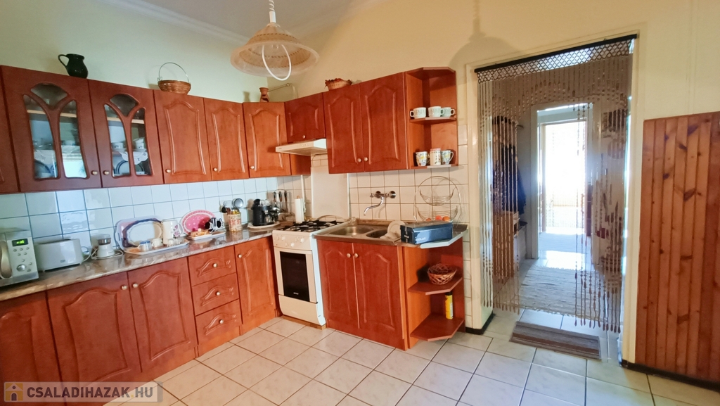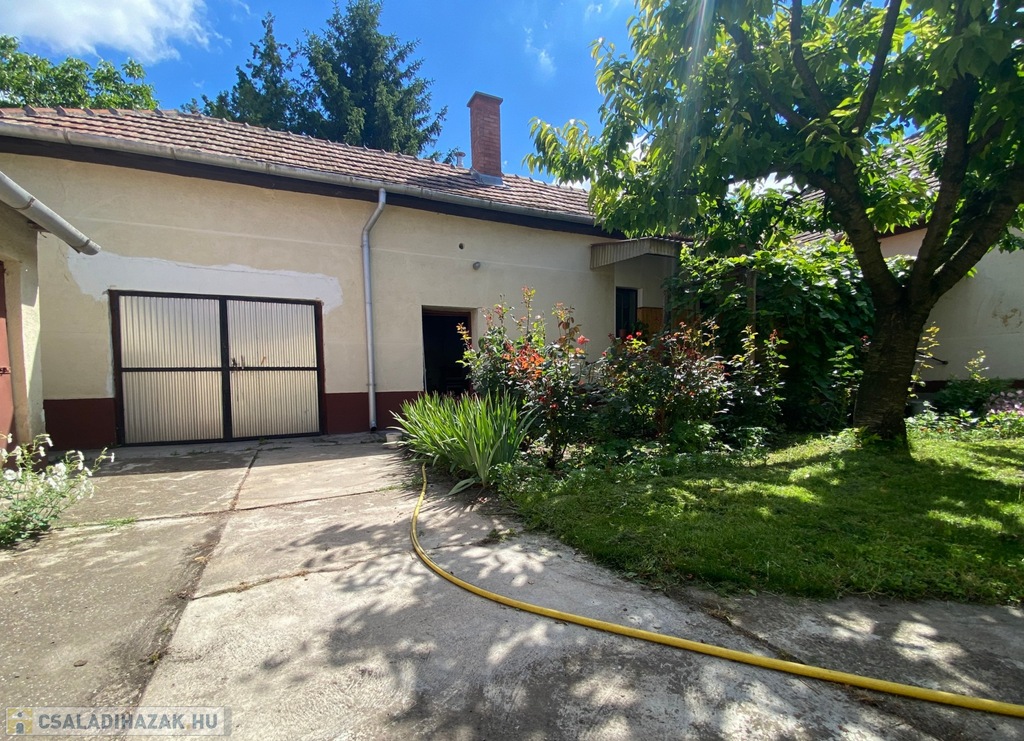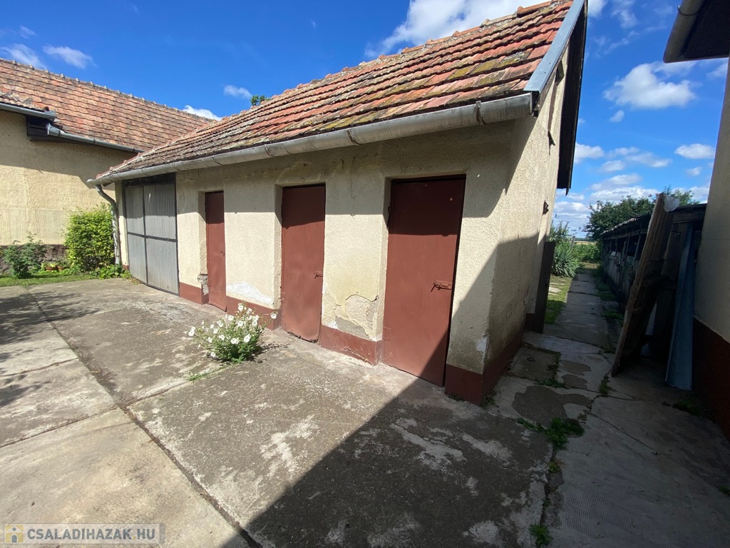 A jó állapotú főépületben kialakításra került: 1 dupla nappali , 2 utcafronti hálószoba, 1 fürdőszoba zuhanyfülkével, 1 külön wc, konyha étkezővel, spájz és egy közlekedő . A belső fedett terasz felől külső bejárattal található egy kazánház (vegyes és egy gázkazán) , egy garázs és egy tároló kamra. Mellette külön épületben 3 db kamra és egy garázs helyezkedik el.