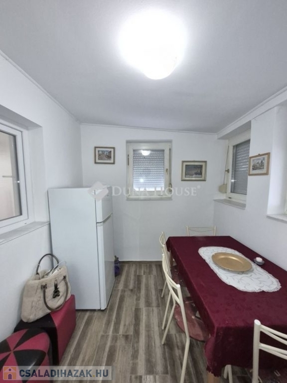 Harkány frekventált nyaralóövezetében a fürdőhöz közel, felújított, állandó lakhatásra alkalmas bruttó 60m2-es, belső két szintes családi ikerház eladó! Az ingatlan 2024-ben került felújításra, melynek során megtörtént a víz- és villanyhálózat cseréje, valamint új ablakok kerültek beépítésre. A ház egy modern, ízlésesen kialakított fürdőszobával és külön zuhanyzóval rendelkezik. Az alsó szinten egy nappali, hálószoba, fürdő- wc-vel, zuhanyzóval valamint egy konyha étkezővel rendelkezik. A nappaliból fa lépcső vezet az emeletre. A felső szinten egy hálószoba, kis társalgó és egy erkély kapott helyet. A fűtést gáz konvektor, klíma, valamint elektromos fűtő panelek biztosítják. A kert 217m2 rendezett, parkosított, a ház hátsó részéről az udvarba kocsival belehet állni. Az ingatlan teljes bútorzattal eladó, tehermentes, azonnal birtokba vehető. Ideális választás állandó lakhatásra vagy akár nyaralónak, befektetésnek is! További információkért keressen bizalommal!