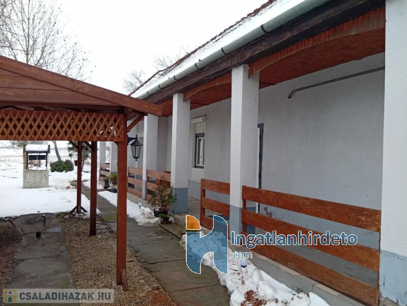 Elhelyezkedése: Belterület Tájolása: Dél-keleti tájolású Állapota: Használt - felújított Komfort besorolása: összkomfortos Építési éve: 1965 Alapterülete: 75 m2 Telekterülete: 4 400 m2 Szobák száma: 3szoba Felújított: Felújított Felújítás éve: 2026 Felújítás során elvégzett munkák: Festés, Tapétázás, Csempe csere, Járólap csere, Parketta csere, Belső átépítés Közművek: Gáz Gázellátás: Vezetékes Fűtés módja: Gáz Fűtés típusa: Konvektoros Homlokzat állapot: átlagos Építési mód: Vályog, Vegyes falazat Tető formája: Magas Tető anyaga: Cserép Parkolási lehetőség: Garázsban, Utcán, Telken Kilátás: Utcafronti kilátás, Udvari kilátás Napelem: Nincs Jellemzői: Csendes környék, Jó közlekedés, Két bejárat, Étkező, Udvari terasz, Beépített szekrény, Beépített konyhabútor, Autóbeálló, Kert, Kerítés, Saját fúrt kút, Zöldterület, Jó közbiztonság Energetikai besorolás: Nincs adat Egyéb jellemzők: Terasz, Melléképület Tv, Internet: Kábeltévé, Internet, Vezetékes telefon Közelben: Iskola, Óvoda, Vasútállomás, Autóbuszállomás, Helyi autóbuszállomás, Orvosi rendelő, Bolt, Gyógyszertár, Postahivatal, Vendéglátó egység, Autópálya Rezsi költség(Ft): 40000 Terhelések: Tehermentes ingatlan Eladásra vonatkozó információk: Az ár tartalmazza a teljes berendezést, Azonnal beköltözhető