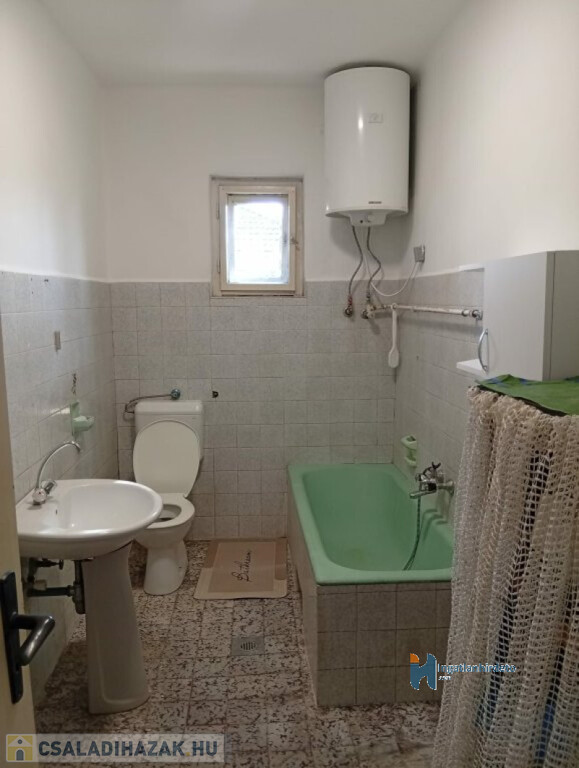 Elhelyezkedése: Belterület Tájolása: észak-nyugati tájolású Állapota: Jó Komfort besorolása: összkomfortos Építési éve: 1975 Alapterülete: 110 m2 Telekterülete: 1 450 m2 Szobák száma: 3szoba Közművek: Gáz, Víz, Villany, Csatorna Gázellátás: Vezetékes Vízellátás: Vezetékes víz Melegvíz-ellátás: Gázkazán Áramellátás: 230V/380 V Fűtés módja: Gáz Fűtés típusa: Cirkó Homlokzat állapot: átlagos Építési mód: Tégla Tető formája: Magas Tető anyaga: Cserép Parkolási lehetőség: Utcán, Telken Kilátás: Utcafronti kilátás, Udvari kilátás Napelem: Nincs adat Jellemzői: Alacsony rezsi, Csendes környék, Jó közlekedés, Redőny, Étkező, Autóbeálló, Kert, Kerítés, Zöldterület, Jó közbiztonság Energetikai besorolás: Nincs adat Egyéb jellemzők: Melléképület, Pince Tv, Internet: Kábeltévé, Internet Közelben: Iskola, Óvoda, Vasútállomás, Autóbuszállomás, Helyi autóbuszállomás, Orvosi rendelő, Bolt, Gyógyszertár, Postahivatal, Autópálya Rezsi költség(Ft): 25000 Terhelések: Tehermentes ingatlan Eladásra vonatkozó információk: Azonnal beköltözhető