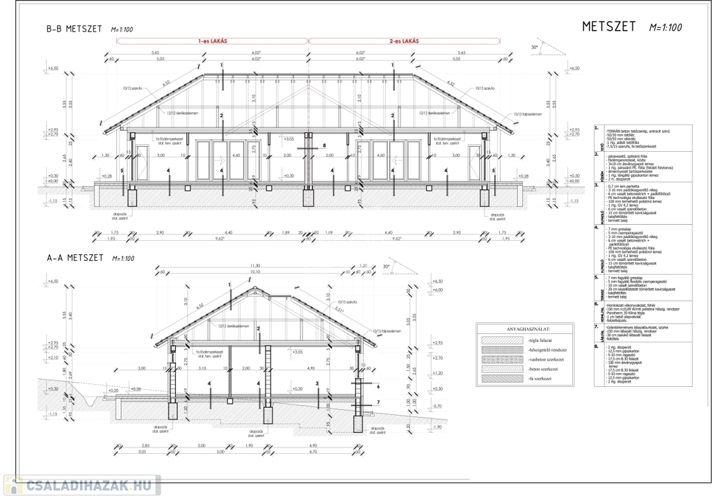 Szigetelés: 15 cm EPS homlokzati, 10 cm padlószigetelés, 30 cm födémszigetelés ásványgyapottal