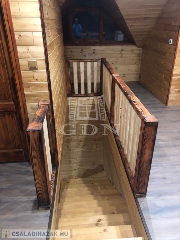 ( masszázskáddal, tusolóval, tv-vel felszerelt ) kettő hálószoba lett kialakítva. Minőségi anyagok beépítésével valósították meg a kreatív ötleteket. A ház fűtése gáz-cirkó kazánnal, kandallóval, infra padlófűtéssel, panellel és villanykandallóval történik. Az ablakok zsalugáterrel, szúnyoghálóval felszereltek. A dupla teraszajtón elektromos aluredőny van. A ház felső szintjét az átalakítás óta nem használták, itt minden új. Az épületet 30 m2-es terasz köti össze a természettel. Ha olyan helyen szeretne élni, pihenni, vállalkozni, ahol meghatározó szerepe van a nyugalomnak, madárcsicsergésnek, kirándulásnak, ide el kell jönni megtekinteni.