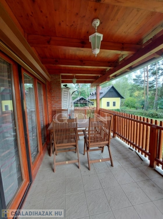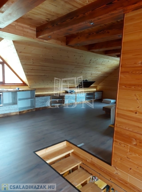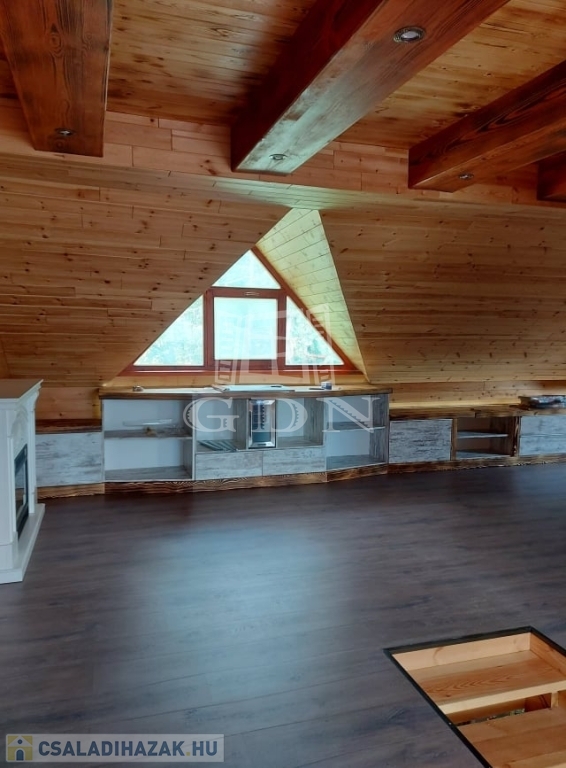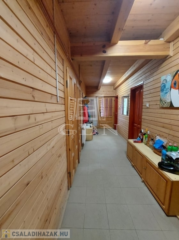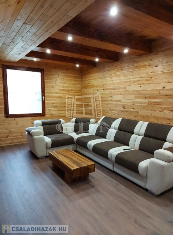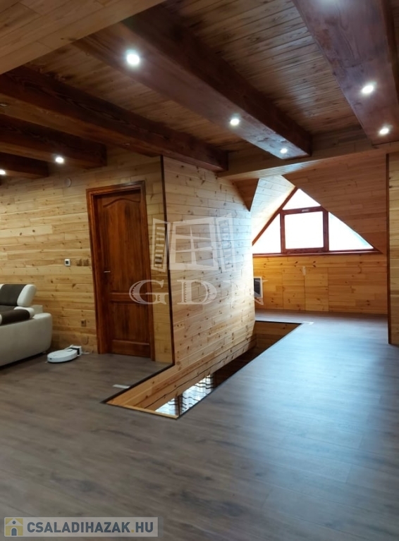 ( masszázskáddal, tusolóval, tv-vel felszerelt ) kettő hálószoba lett kialakítva. Minőségi anyagok beépítésével valósították meg a kreatív ötleteket. A ház fűtése gáz-cirkó kazánnal, kandallóval, infra padlófűtéssel, panellel és villanykandallóval történik. Az ablakok zsalugáterrel, szúnyoghálóval felszereltek. A dupla teraszajtón elektromos aluredőny van. A ház felső szintjét az átalakítás óta nem használták, itt minden új. Az épületet 30 m2-es terasz köti össze a természettel. Ha olyan helyen szeretne élni, pihenni, vállalkozni, ahol meghatározó szerepe van a nyugalomnak, madárcsicsergésnek, kirándulásnak, ide el kell jönni megtekinteni.