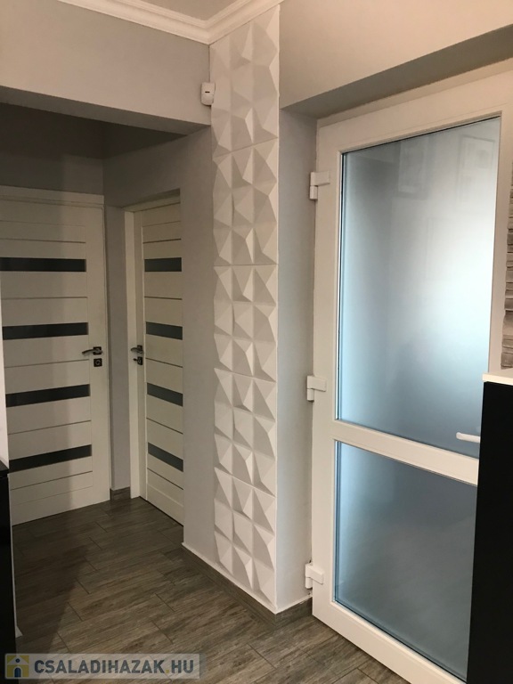 Padlózat: a szobákban melegburkolat ( laminált padló) található. A fürdőszoba, kamra, amerikai konyha, előszoba, terasz hidegburkolattal van ellátva.