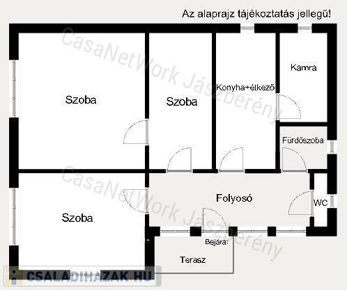 - elosztása jó, 3 szoba, folyosó, konyha+étkező, kamra, fürdőszoba és külön WC helyiség,