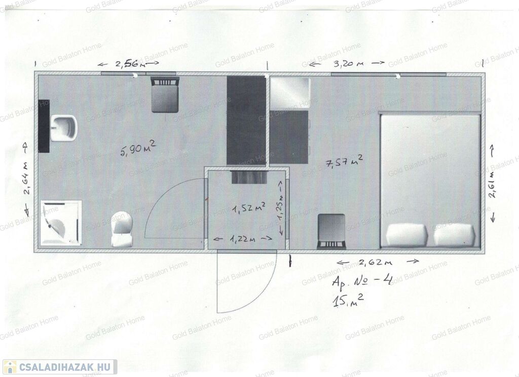- apartman 4 (4 fő részére): 1 szoba minikonyhával, fürdőszoba zuhanyzóval+WC