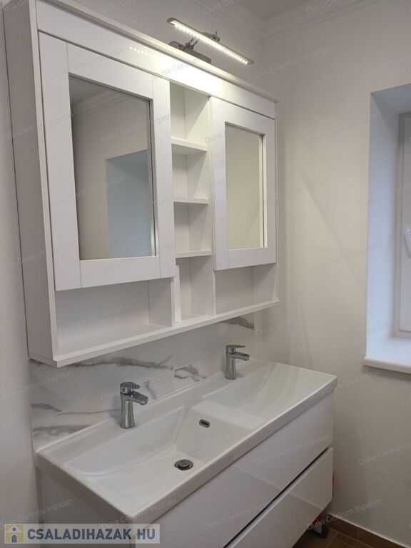 Hévíz kedvelt részén kétszintes, dupla komfortos, felújított ház eladó. A ház belső tere világos, modern. A földszinti részen amerikai konyha, nappali, szoba, gardrób, fürdőszoba, wc, míg a felső szinten három szoba, fürdőszoba kapott helyet. A fűtést -hűtést hőszivattyús klíma szolgáltatja . Az ingatlanhoz különálló garázs, tároló is tartozik . A kert parkosított , ahol egy grill -terasz is kialakításra került.