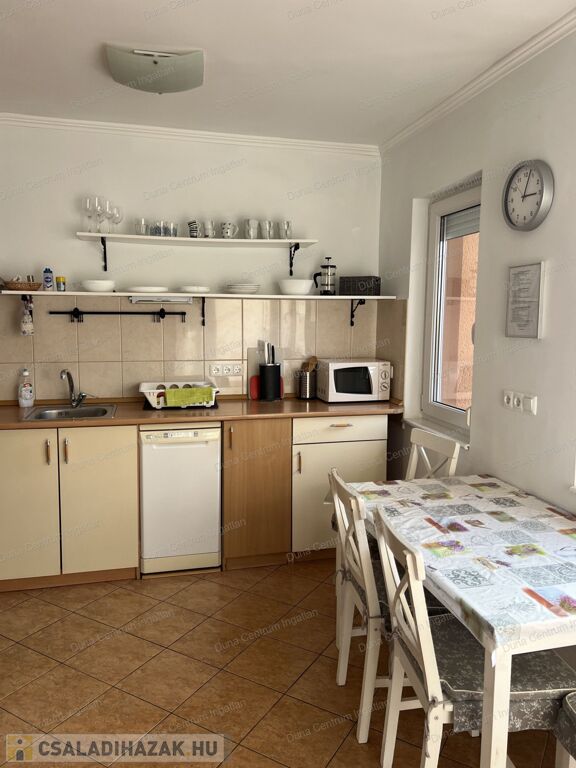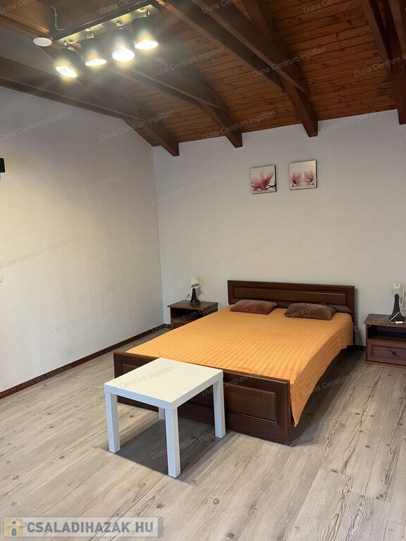 A ház két szintes, a földszinti részen egy lakás lett kialakítva,ahol konyha +étkező, nappali, fürdőszoba, hálószoba, erkély, terasz , illetve egy nagy háztartási helyiség található. Az emelet külön bejáraton át közelíthető meg kívülről , itt kettő apartmannal van. Mindkét apartmanban konyha - étkező, fürdőszoba, nappali, hálószoba, erkély várja a vendégeket. Az udvaron egy különálló földszintes, 50 nm-es vendégház van. /konyha-étkező- nappali, fürdőszoba, hálószoba / Az udvar rendezett, napozási és grillezési lehetőséggel, illetve parkolási lehetőséggel 6 gépkocsi számára.