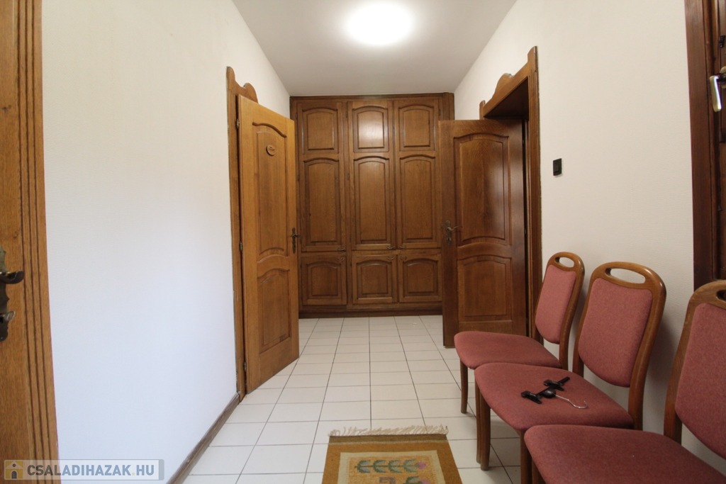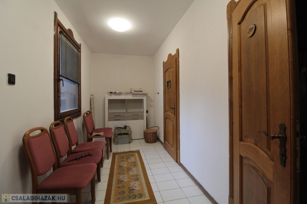 A dupla garázs mindkét oldaláról nyílik bejárat a házba. Könnyedén lehetséges ügyvédi iroda, rendelőnek való hasznosítása itt külön Wc, váróterem és szoba található. Innen közvetlen átjárás biztosított a nappalit és a garázst is összekötő előtérbe.