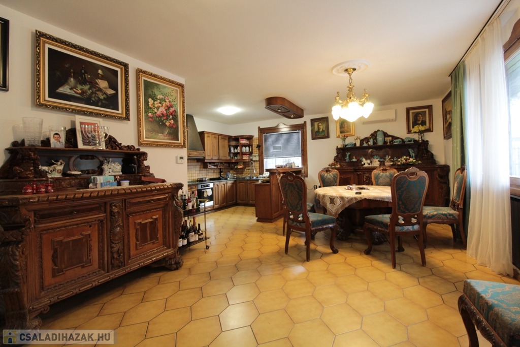 A gasztrotérben található antik, nagyméretű étkezőgarnitúra, amely Andrássy gróf tiszadobi kastélyából származik, a vételár részét képezi, tovább emelve az otthon különleges atmoszféráját.