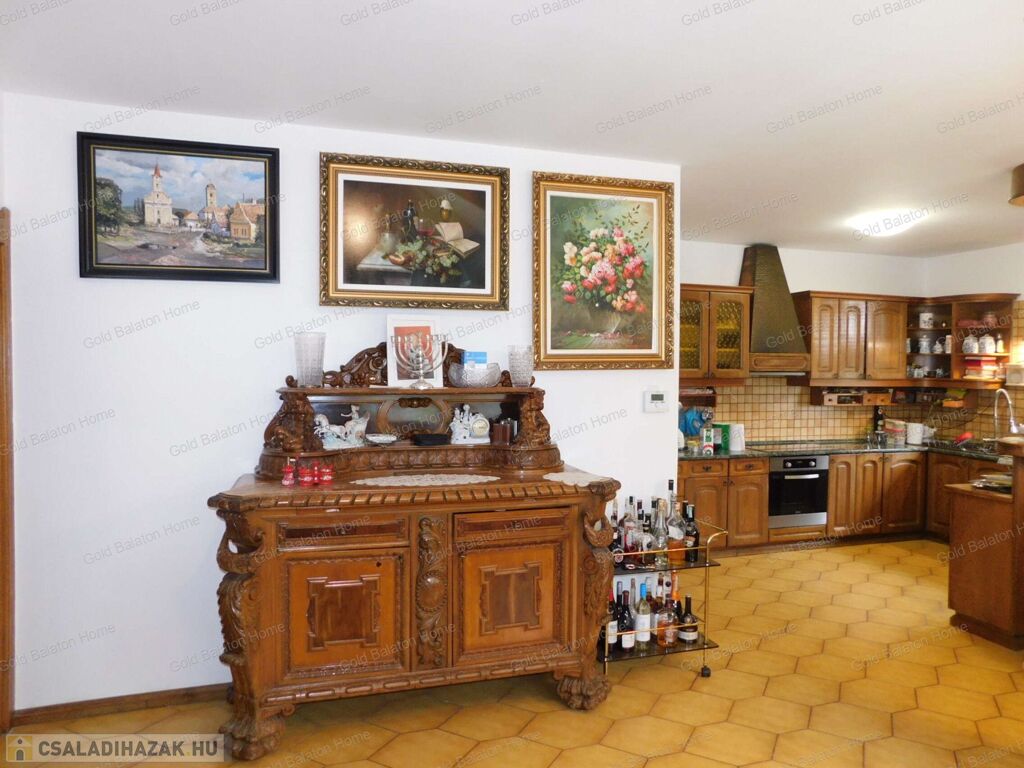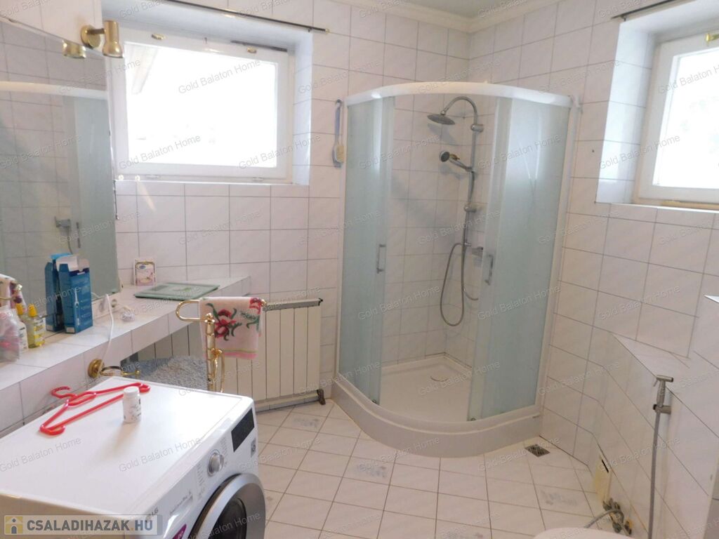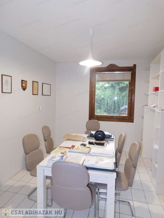 A családi ház két külön bejárattal rendelkezik, az egyik bejáraton az iroda, vagy akár rendelőként használható helyiségek vannak. A belső térből átjárás lehetséges az iroda és a duplagarázs felé is. Hévíz egyik csendes utcájában részben bútorozott, 5 hálószobás, nagy nappalis CSALÁDI HÁZ, gondozott kerttel és rendezett udvarral - a Hévízi tótól mindössze 1100 méterre, a Balatontól 7km-re eladó.