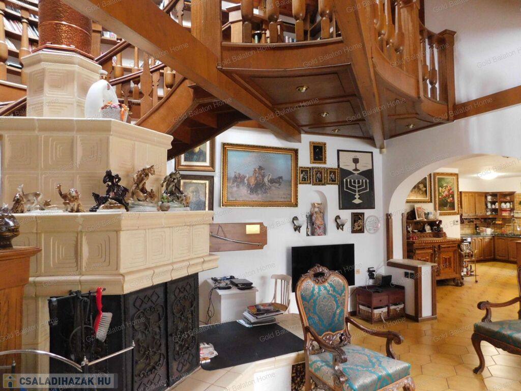 - igényes, stílusos berendezés: az ajtók, lépcsők, korlátok, beépített szekrények mind tölgyfából készültek, egyedi tervezésűek