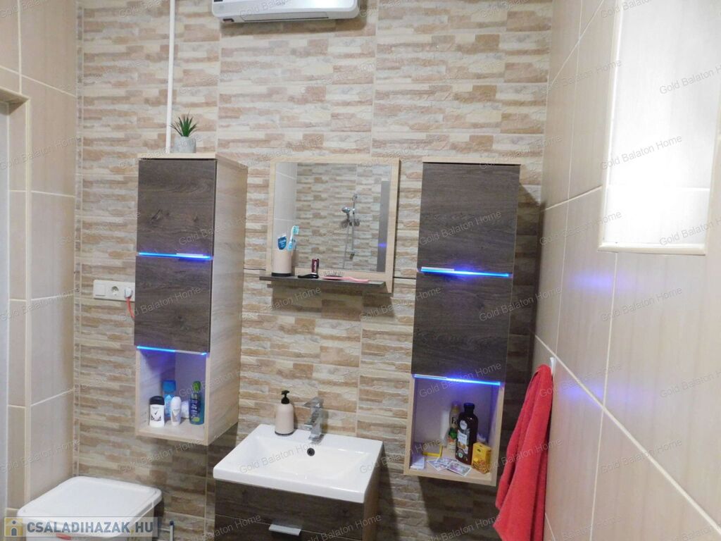 - fűtése: gázcirkó (hő leadó típusa radiátor), 8,2 KW napelerendszer a gazdaságosságért elektromos fűtő panelekkel, 1 db. légkondicionáló berendezés
