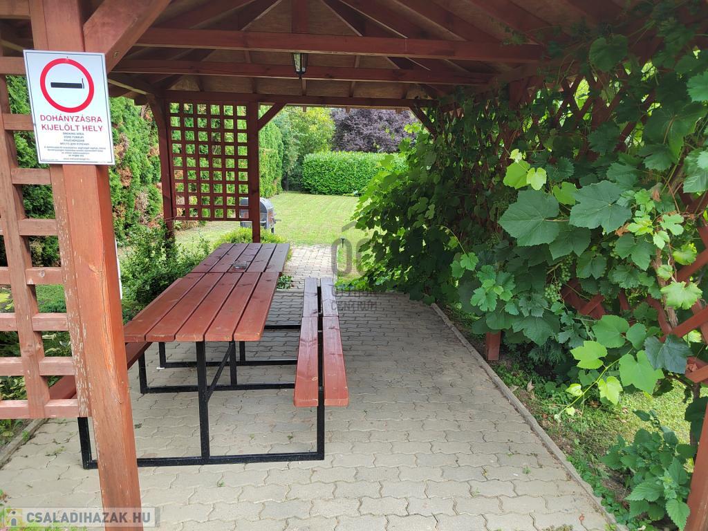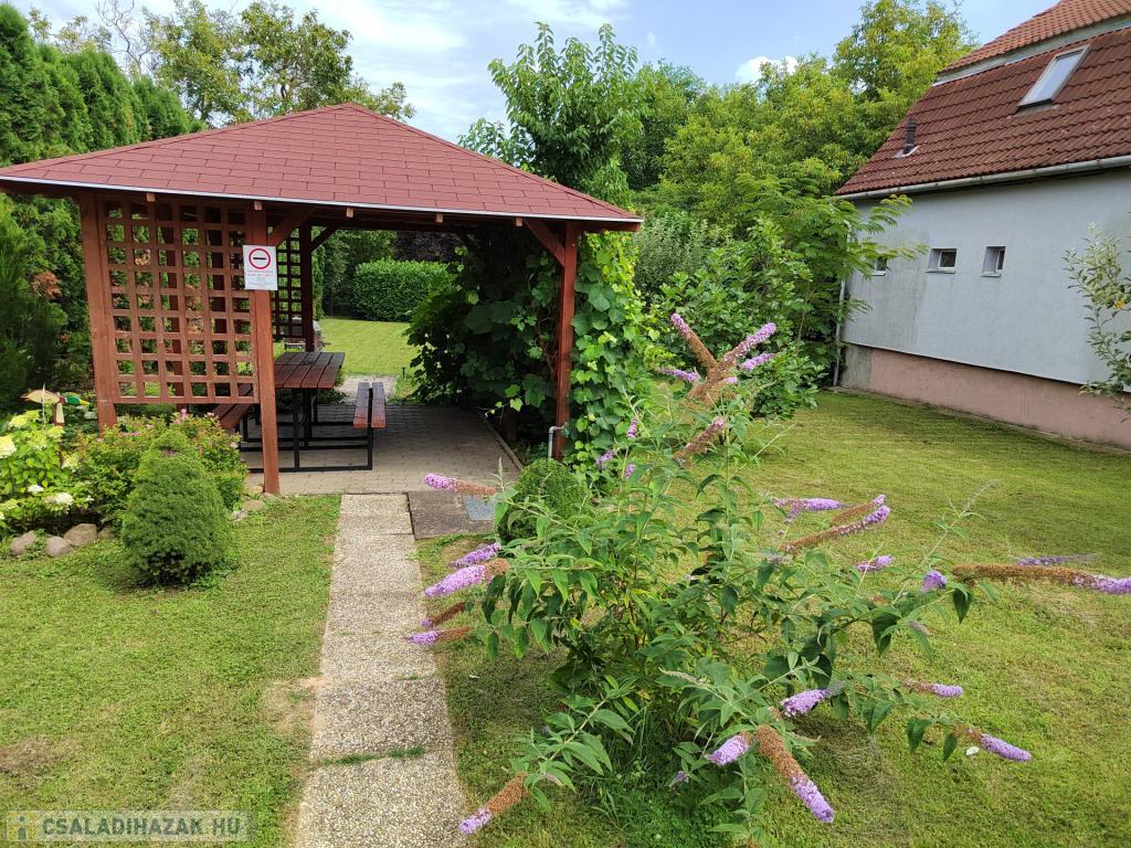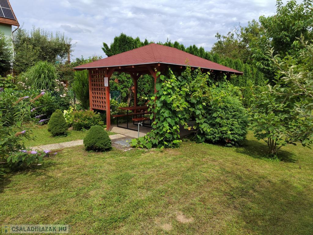 Az ingatlanhoz tartozik egy 879 m2-es gyönyörű kert gyümölcsfákkal, (szeder, alma, cseresznye, sárgabarack, szőlő ). A kertben van egy grillező és kerti kiülő is.