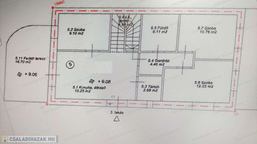 - 1-es lakás (50nm): nappali, konyha-étkező, fürdőszoba+WC, gardrób, szoba, 20 m2-es fedett terasz