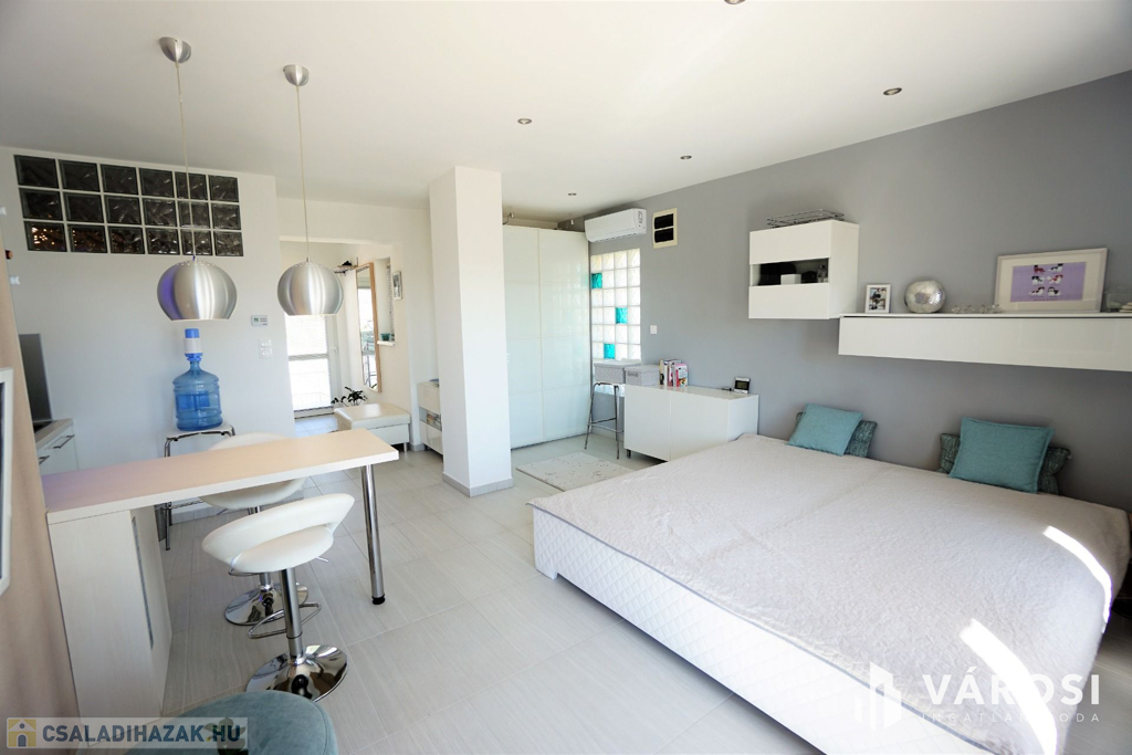 2018-ban, magas minőségben épült ez a különlegesen megtervezett, igényesen kialakított, három szintes 237 nm-es ház, mely egy 612 nm-es telken helyezkedik el. Minden helyiségben elegáns, modern stílus dominál. Ízléses kialakítás és berendezés, magas minőségű beépített anyagok, átgondolt helykihasználás jellemzi.