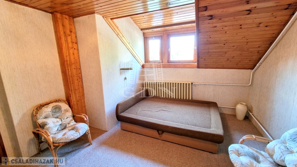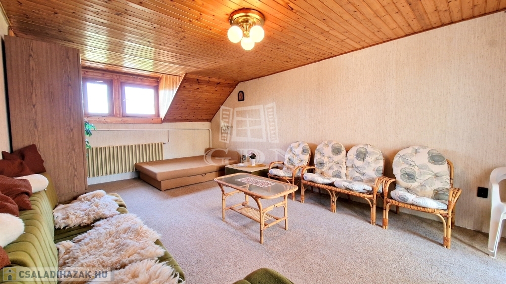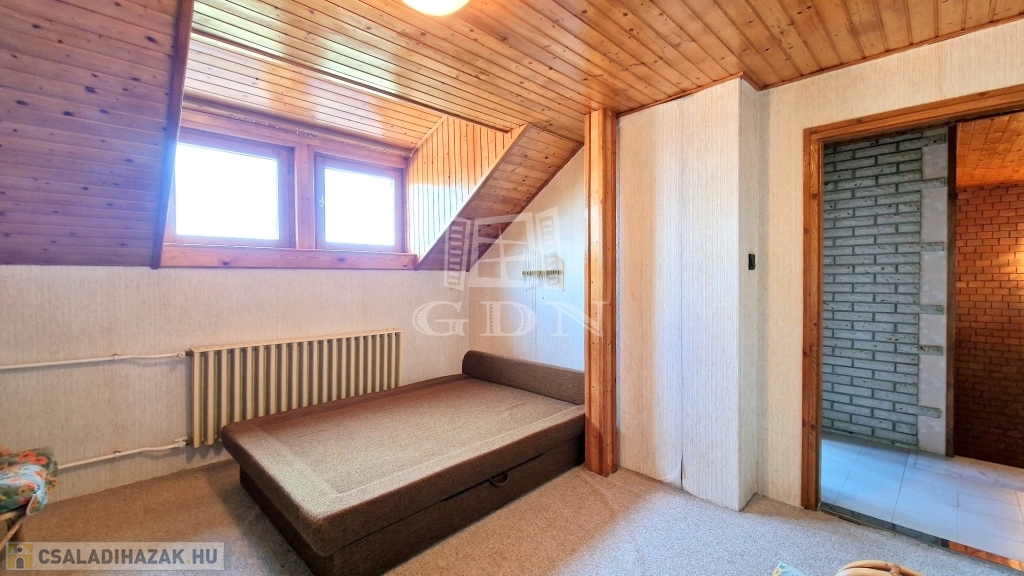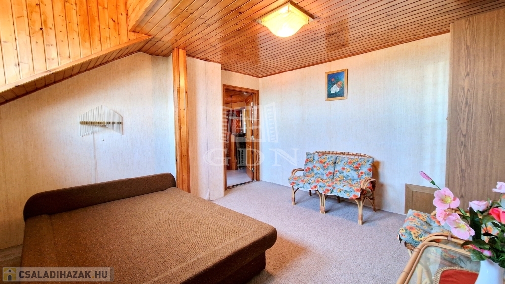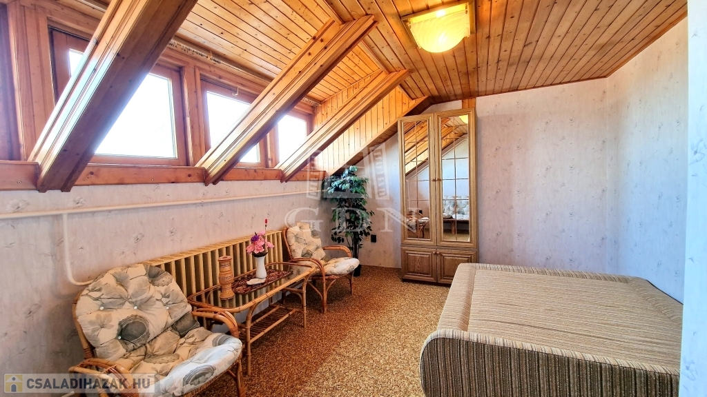 - A tetőtérben 4 hálószoba, 2 zuhanyzós fürdőszoba, 1 konyha és közlekedő folyosó található.