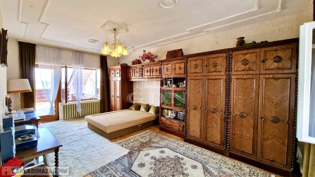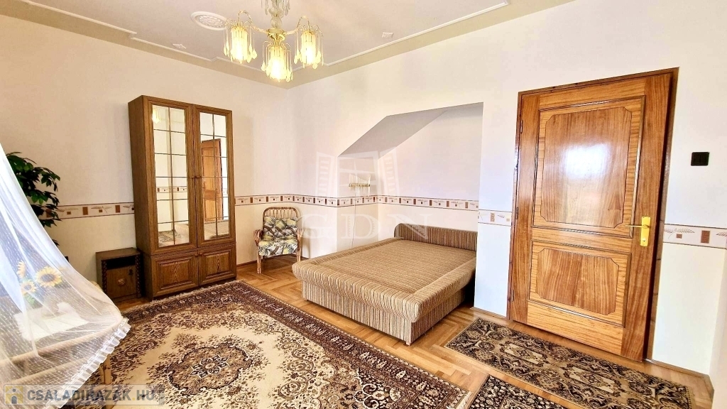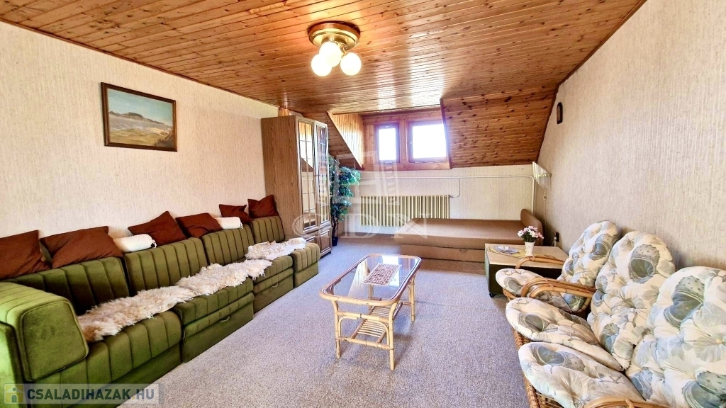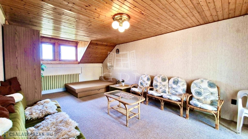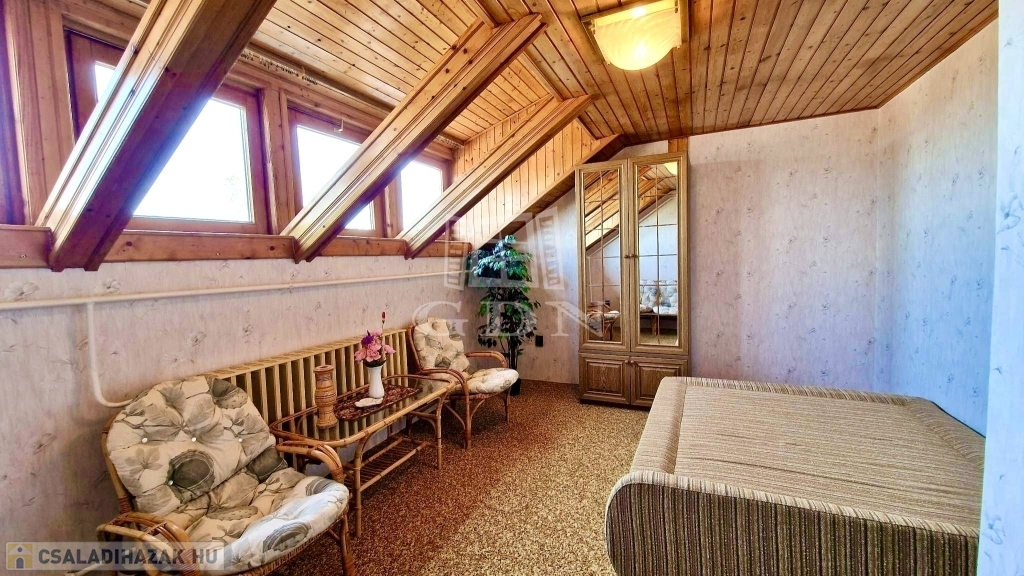 - A tetőtérben 4 hálószoba, 2 zuhanyzós fürdőszoba, 1 konyha és közlekedő folyosó található.