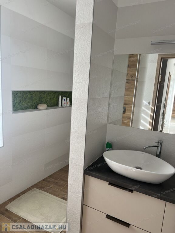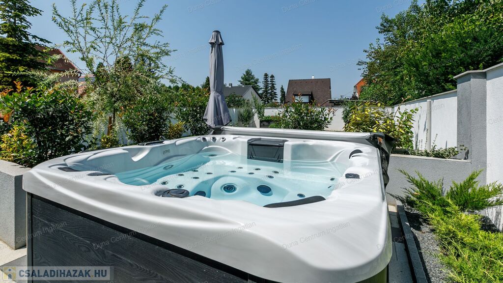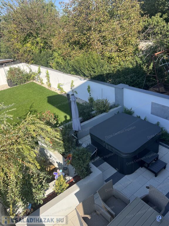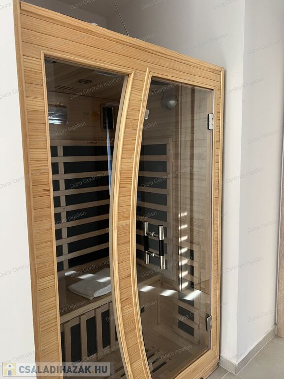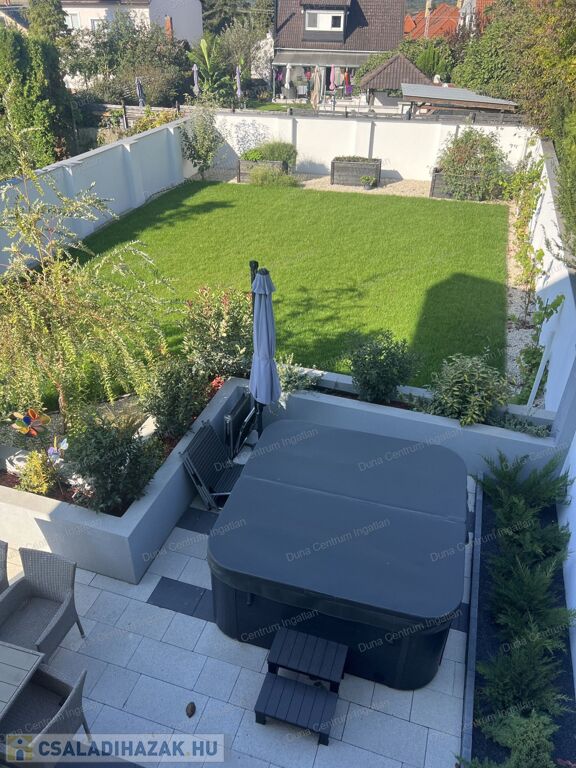 Hévíz kedvelt, szép, modern házakkal beépített részén kiváló minőségű anyagogból épített, modern, luxus családi ház eladó. Az ingatlant tágas, világos terek jellemzik. A földszinti részen hatalmas nappali, konyha- étkező, kettő szoba, háztartási helyiség, fürdőszoba, szauna, garázs, míg az emeleten kettő szoba, fürdőszoba kapott helyet. A fűtés energiatakarékos, hőszivattyús padlófűtéssel megoldott . A napelemek termelése fedezi a ház éves energiafelhasználását. A kert rendezett, parkosított. A saját szauna és jakuzzi egyedülálló luxust és wellness-élményt kínál. Az ár tartalmazza a teljes berendezést !