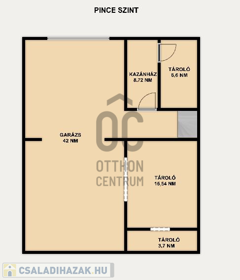 - pince szint: dupla garázs + aknával, kazánház, tárolók összesen 70 nm