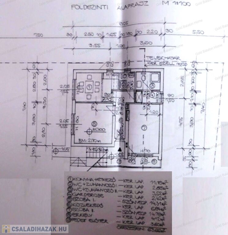 földszint (63,66 nm): 2 apartman (szoba, konyha - étkező, fürdőszoba zuhanyzóval és WC – vel, erkély)