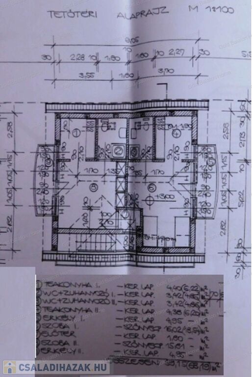 tetőtér (nettó: 59,15 nm, bruttó: 68,19 nm): 2 apartman (szoba, konyha - étkező, fürdőszoba zuhanyzóval és WC – vel, erkély)