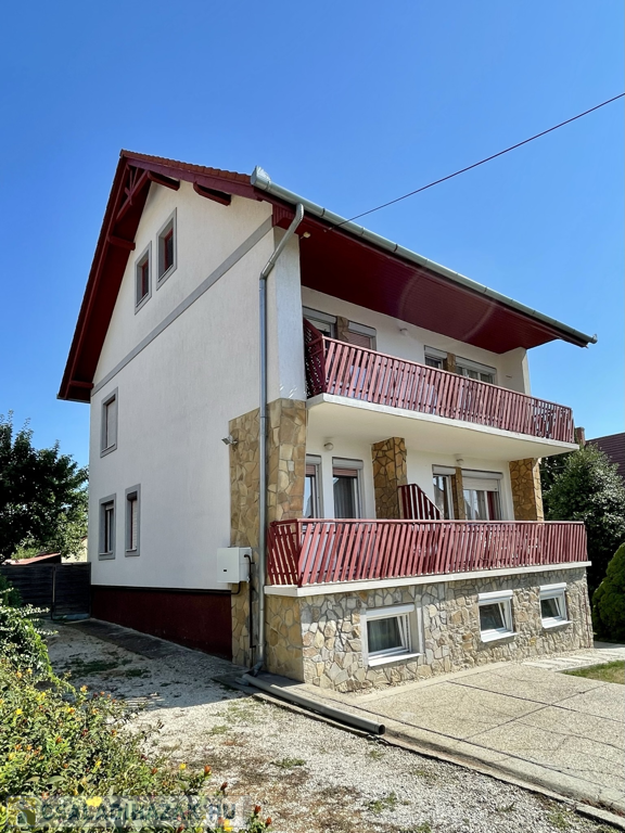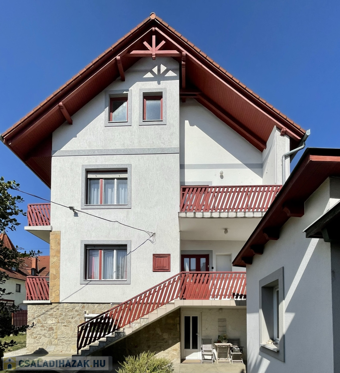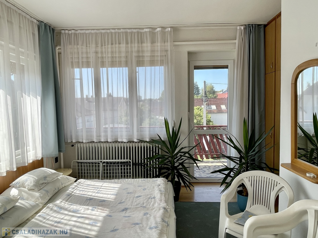 Hévízen a tófürdőtől pár perc sétára, a központhoz közel, mégis csendes utcában kínálunk eladásra egy 1975-ben épült négy szintes téglaépítésű és cseréptetővel fedett 280m2-es családi házat 437m2-es telken! 2005-ben a tető le lett cserélve és több átalakítás is történt. A legalsó szuterén részen található a tulajdonosok lakrésze két szobával, konyhával, fürdőszobával, WC-vel és kazánházzal. A felső két szinten összesen négy apartman van kialakítva szobákkal, konyhákkal, fürdőszobákkal vendégek fogadására. A padlástér nincs befejezve, de itt is kialakítható egy vagy két apartman. A szobák szalag parkettával és laminált padlóval burkoltak vegyesen, a fürdők, konyhák és közlekedők járólapokkal fedettek. A nyílás zárók fa és műanyagok vegyesen. A fűtésről gáz cirkó és cserépkályha is gondoskodik, a melegvizet villanybojlerek állítják elő. Az épület keleti feléhez lett építve egy 26m2-es tároló műhely ahol ipari áram is elérhető. Korszerűsítés után kiválóan alkalmas vendégek fogadására vagy akár több nemzedék együtt élésére! Élelmiszerbolt, polgármesteri hivatal, templom, iskola és gyógyszertár négyszáz méterre, a tó hatszáz méterre, Keszthely 7 kilométerre, Bécs és Budapest egyaránt kétszáz kilométerre elérhető!