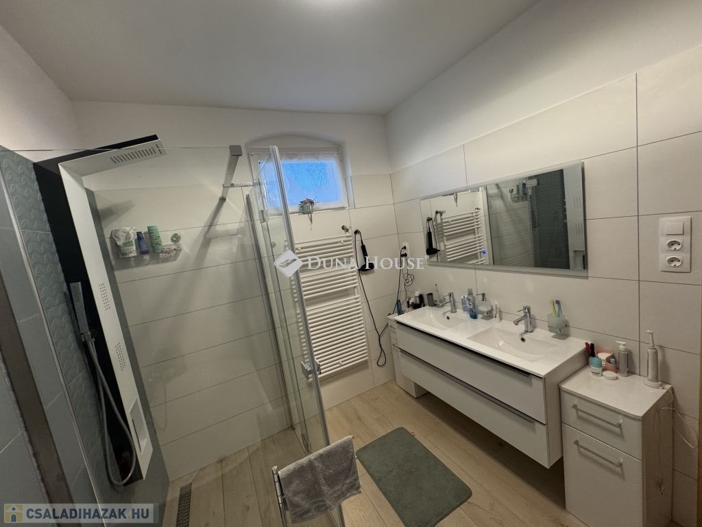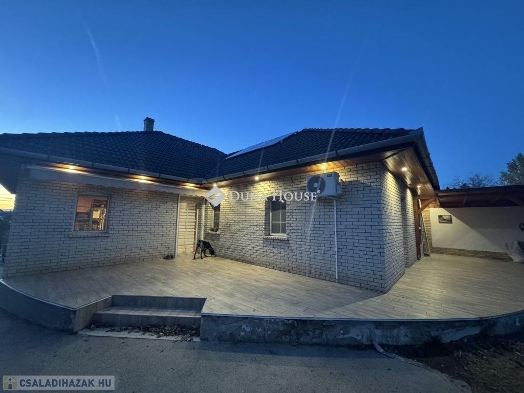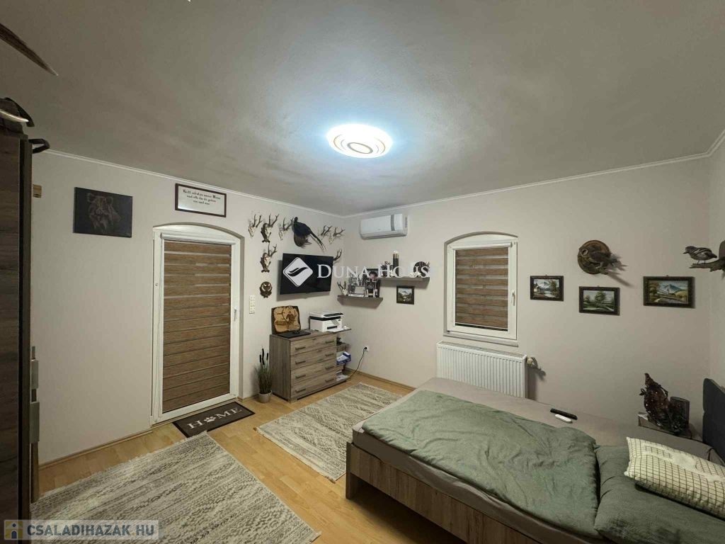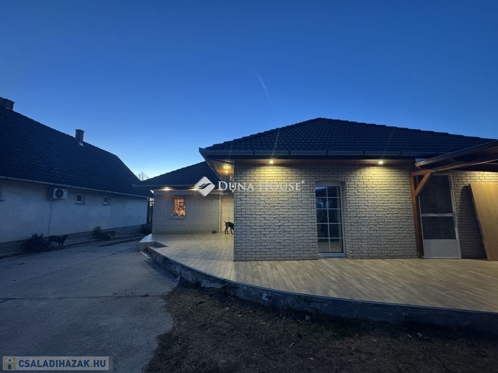 Eladásra kínálunk Himesházán egy kiváló állapotú, tégla építésű családi házat, amely modern komforttal és praktikus elrendezéssel várja új tulajdonosát.Az ingatlan jellemzői:-Alapterület: 160 m²-Hálószobák: 3 db, (külön nyíló)-Fürdőszobák: 2 db-Külön WC: 1 db-Tágas nappali amerikai konyhával ideális közös családi élethez-Fűtésrendszer: gáz-cirkó + vízteres kandalló kombinált rendszer, radiátor és padlófűtés is kiépítve-Napelem (felszereltségként) az energiahatékonyságot is szolgálja-Telekméret: 1 123 m² , fedett és nyitott terasz kertkapcsolattal.Garázs: dupla, 67 m²-es (két állásos), amelynek tetején külön bejáratú padlástér került kialakításra extra tárolási vagy akár lakótér funkcióra is alkalmas.Miért érdemes megtekinteni?Ez az ingatlan egyszerre kínál tágas, kényelmes családi otthont és praktikus kiegészítő lehetőségeket. A három hálószoba és két fürdőszoba jól szolgálja a családos életet, míg az amerikai konyha nappali kialakítás könnyed, modern életvitelt tesz lehetővé. A fűtési rendszer és a napelemes megoldás révén energiatudatosan is élhető az ingatlan. A nagyméretű telek és a külön bejáratú padlástérrel rendelkező dupla garázs pedig lehetőséget kínál hobbi munka, vagy tárolási célokra is.Elhelyezkedés:Himesháza minden megtalálható, ami a mindennapi élethez szükséges: bolt, posta, óvoda, iskola, orvos, fogorvos és bank is helyben elérhető.Kiváló az elhelyezkedése az M6-os autópálya pár perces autóútra található, így Pécs kb. 30 km, Mohács pedig mindössze 10 km távolságra van.Ha felkeltette érdeklődését keressen bizalommal!