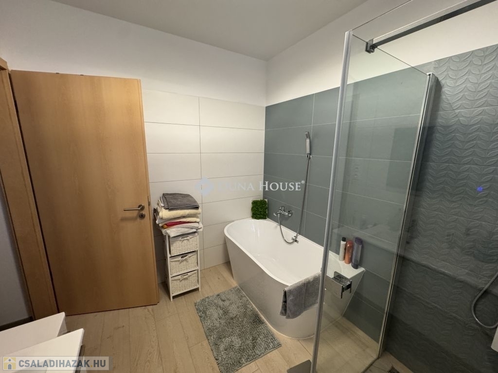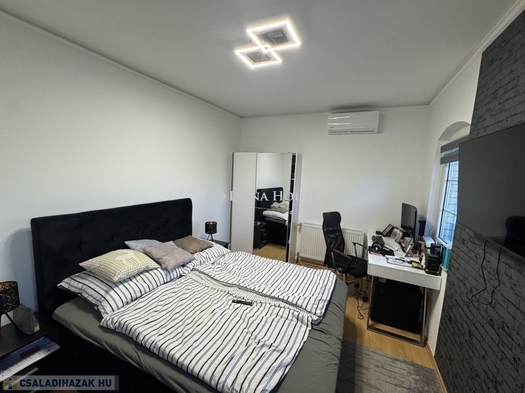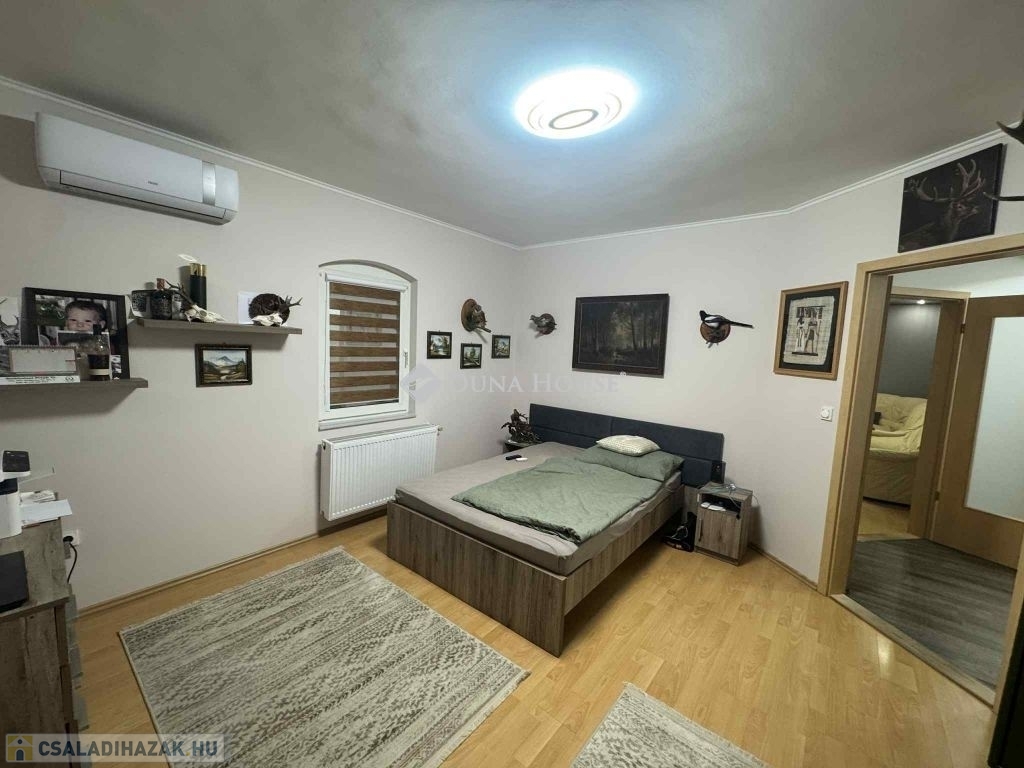 A három hálószoba és két fürdőszoba jól szolgálja a családos életet, míg az amerikai konyha nappali kialakítás könnyed, modern életvitelt tesz lehetővé. A fűtési rendszer és a napelemes megoldás révén energiatudatosan is élhető az ingatlan.