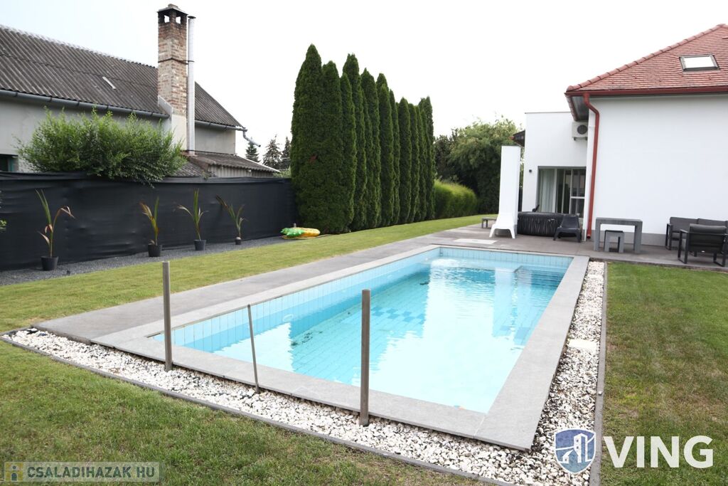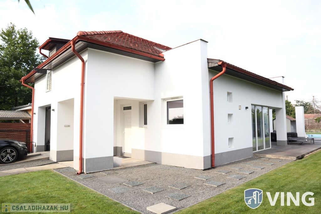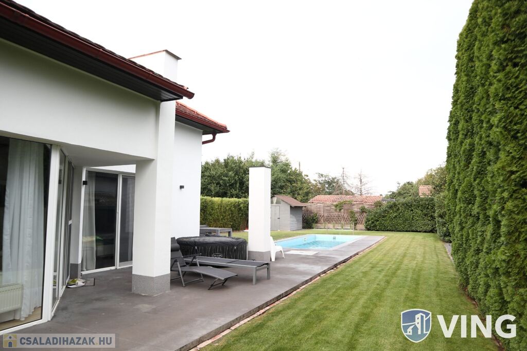 Szegedtől 10 percre, Hódmezővásárhely kedvelt Új- Kishomoki részén eladó, 2007-ben épült 140 m²-es kétszintes 3 szobás családi ház, medencével, parkosított udvarral.