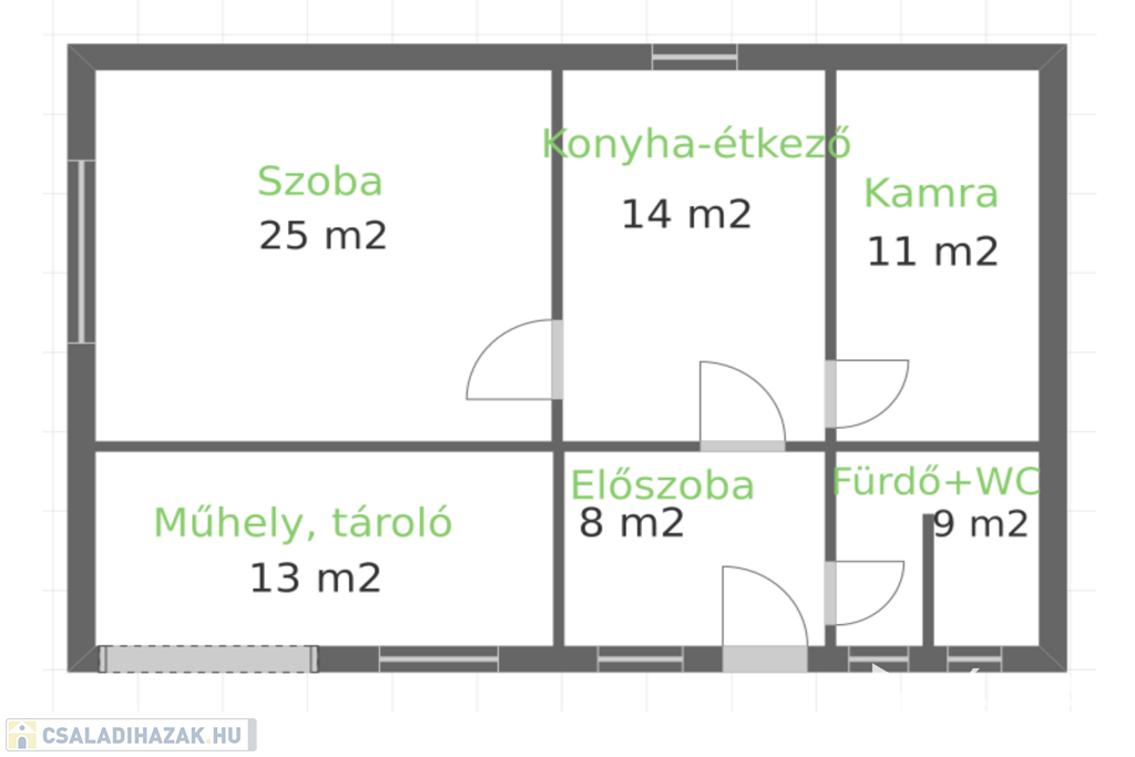 -67 m2 hasznos alapterület + 13 m2 műhely, tároló