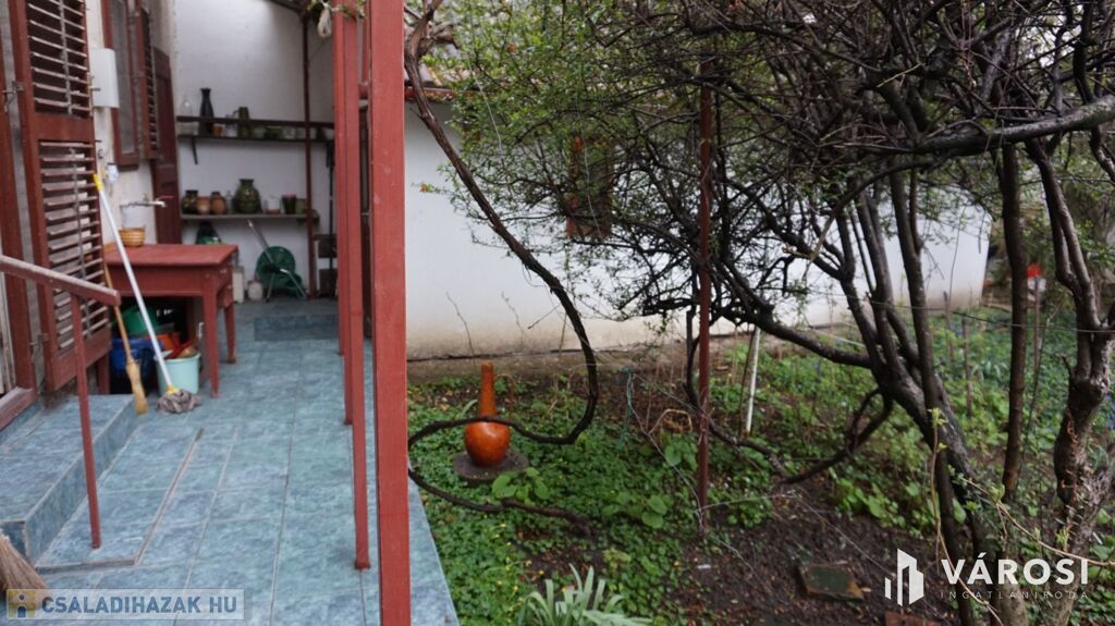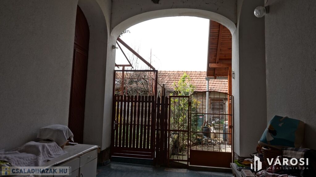 Hódmezővásárhely belváros közeli csendes utcájában eladó polgári ház egyik fele /osztatlan közös tulajdon használati megállapodással/. A lakás 74 m2, egy 15 m2-es terasz és 100 m2-es kertrész tartozik hozzá, melyen 2 melléképület található. A ház tégla építésű és jellemzően egy tágas közös használatú szárazkapu bejárón jutunk az épületbe.