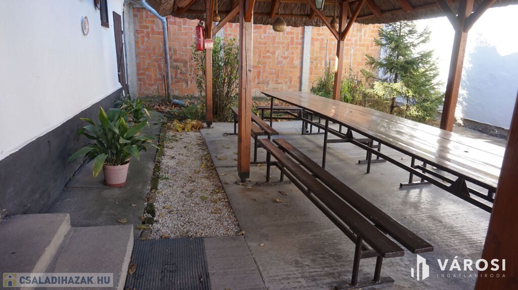 Az épület hasznos alapterülete 76 m2, a telek 288 m2. Kocsibeállási lehetőség jelenleg nincs, de igény szerint kialakítható. Fűtése jelenleg cserépkályhával történik, a gázcsonk az épület falán található. A meleg vizet villanybojler szolgáltatja. A közelmúltban a tető áthajtásra került, valamint a teljes villanyhálózatot felújították. Az udvaron számos melléképület, pl. garázs, nyári konyha, fás kamra és egy hangulatos tágas kerti kiülő is helyet kapott. A közelben bölcsőde, óvoda, iskola, gyógyszertár, kórház, bevásárló centrum és az elkerülő út is karnyújtásnyira található.