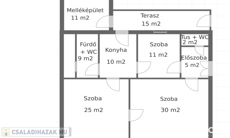 -Előszoba, 3 db szoba, 2 fürdőszoba, konyha