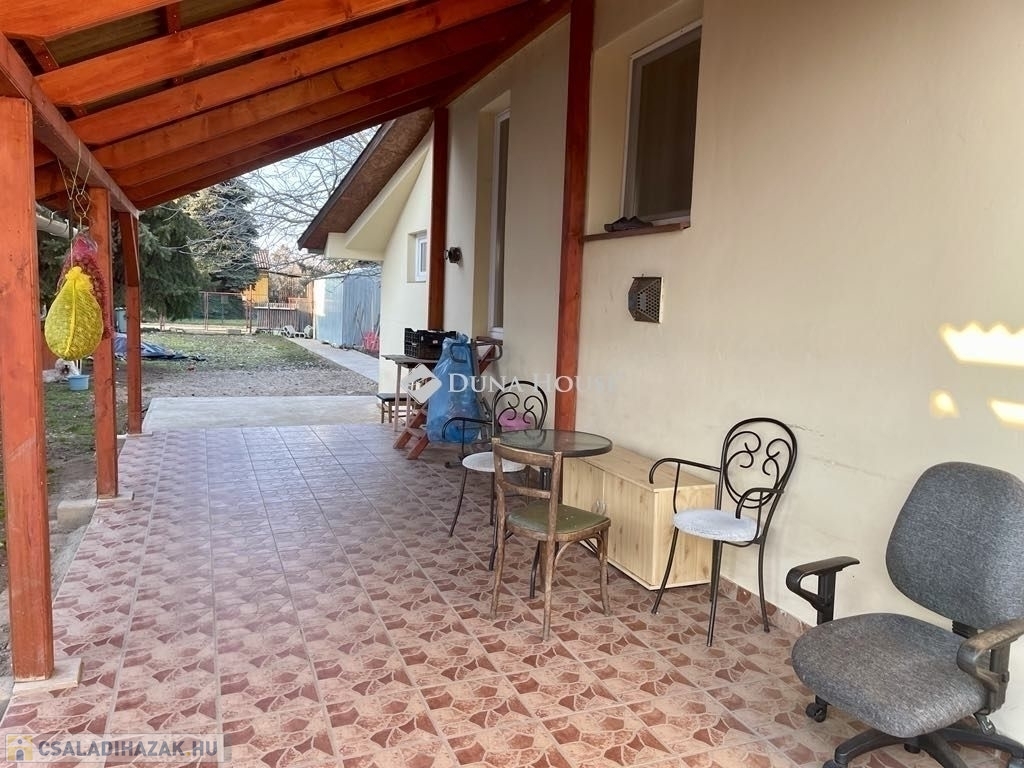 A ház nyugati oldalán 2021-ben épült egy 21 m²-es, fedett fa terasz, amely kellemes pihenőhelyet biztosít a reggeli kávézásokhoz vagy esti kikapcsolódáshoz. A gépkocsi számára mobil garázs biztosít kényelmes parkolást.