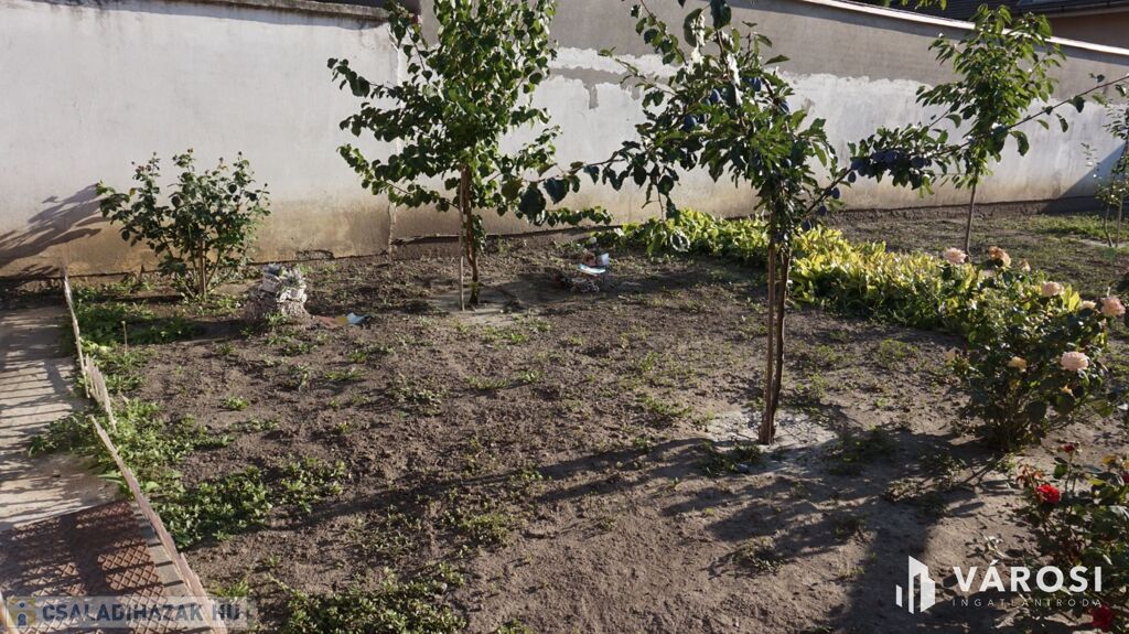 A kert rendezett, fiatal termő gyümölcsfákkal, virágoskerttel. Galambház, tároló és egy 40 m2-es tégla melléképület található még az udvaron. Kocsibeállási lehetőség pedig a szárazkapubejáróban van, mely 30 m2.