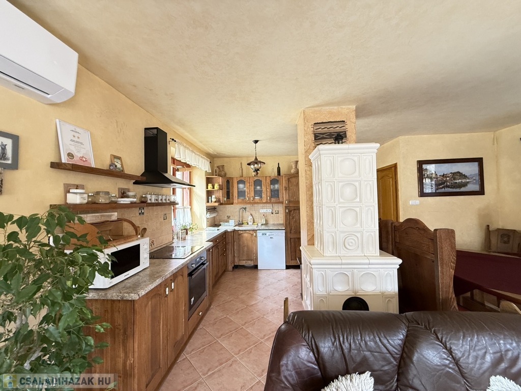A második - kisebb ház - egy régi, sziklatalapzaton álló, vegyesfalazatú ház, mely 8 éve teljeskörűen, gyakorlatilag a falazatig lett felújítva. Ekkor új tetőt, villamos- és vízhálózatot, új, fa nyílászárókat kapott a ház, így a mai igényeknek tökéletesen megfelel. Fűtéséről két gyönyörű cserépkályha és / vagy klíma gondoskodik.