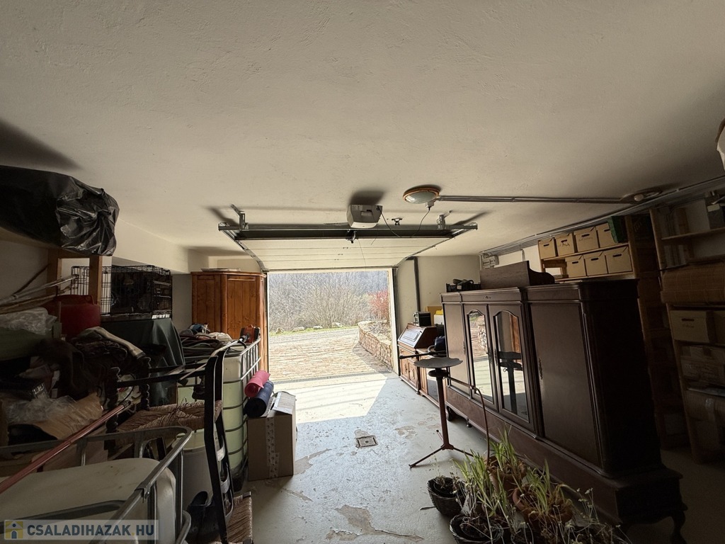 A szuterénszinten - melyből lépcsőn lehet feljutni a házba - egy az utcára nyíló, nagy méretű garázs / tároló, tűzifatároló, kazánház is helyet kapott.