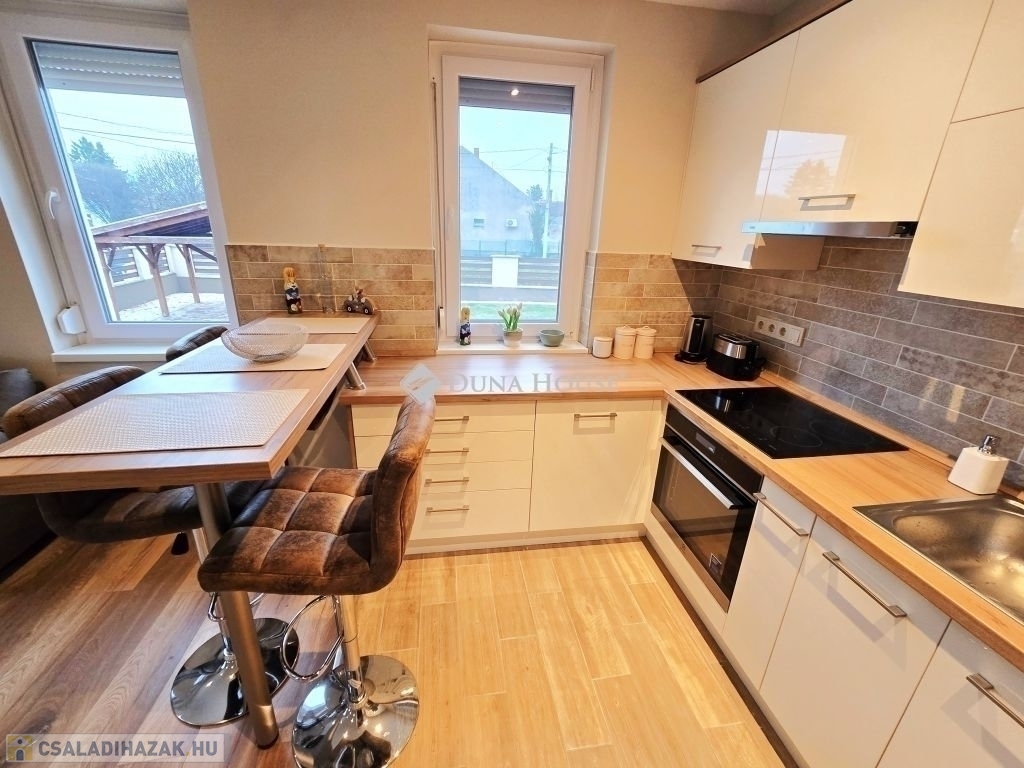 Hosszúhetény központi részén eladó egy teljeskörűen felújított, össz. nettó 160 nm-es lakótérrel rendelkező, 2 lakrészből álló, gáz kondezációs kazánnal fűtött családi ház, fedett terasszal, wellness előkészítéssel, műhellyel, tágas garázzsal, több állásos fedett udvari beállóval, 1000 nm-es sík parkosított telken.A ház nagyobb lakrésze 2 tágas szoba+ amerikai konyha-nappali, míg a hátsó kisebb lakrész amerikai konyha-nappali+1 tágas szoba elosztású. A 2 lakrész csak opcionális, igény szerint egy nagy családi házként is lakható.Az ingatlanon az elmúlt 1-2 évben a következő felújításokat végezték el:- új tető- homlokzati szigetelés-színezés- új külső és belső nyílászárók- új burkolatok és szaniterek- új víz- és villany vezetékek- új fűtésrendszer- friss festés- 2 db új minőségi, gépesített konyhabútor- elektromos udvari és garázs kapu- 80 nm-es fedett terasz/nyári konyha/ wellness előkészítése- udvar térkövezése- 2 állásos fedett gépkocsi beálló építéseAz ingatlan tehermentes és azonnal költözhető!A teljes ÚJ BERENDEZÉS alku tárgyát képezi!I.ár: 99,9 M Ft