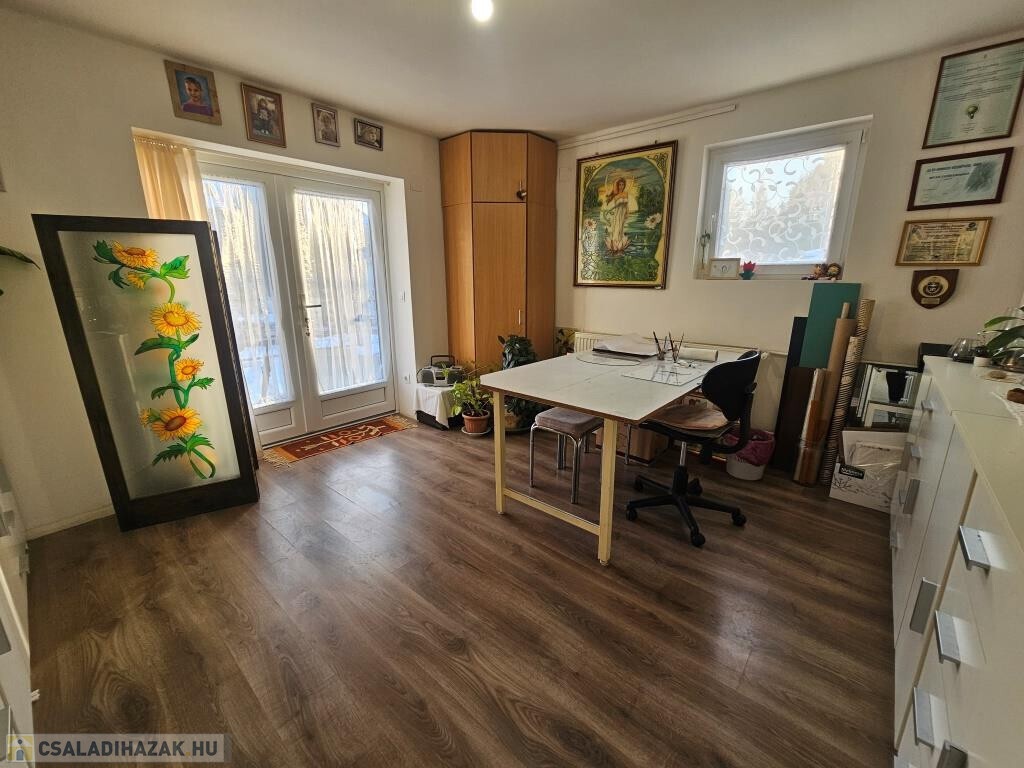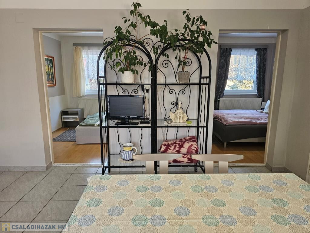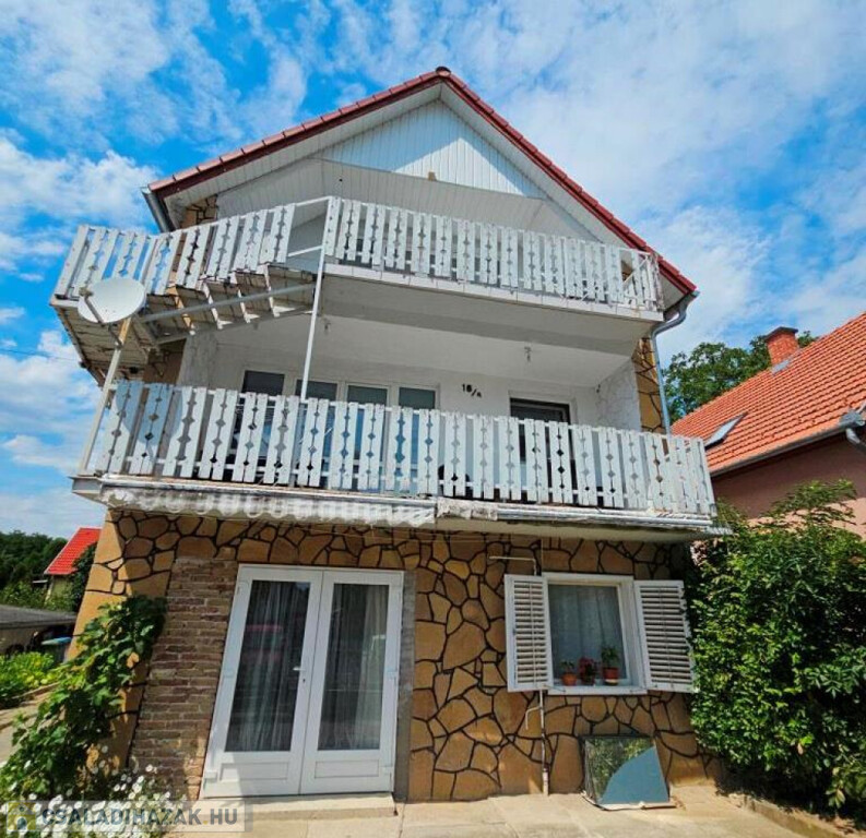 Igalban a gyógyfürdőtől 5 perc sétára kínálunk megvételre két, egymással kertkapcsolatban lévő házat. Az egyik egy szépen felújított háromszintes lakóépület, ahol mindhárom szinten ki van alakítva egy-egy önállóan megközelíthető lakrész saját konyhával és fürdővel, így külön is használhatók, kiadhatók. A földszint helyiségei: nappali étkezővel, terasszal, közlekedő, ahonnan minden nyílik, konyha, kamra, fürdő, külön WC, mosókonyha, tároló, egy hálószoba, és egy tágas előtér, ami jelenleg alkotó műhely is egyben. Alapterülete 77 m2. Az első emelet helyiségei: étkezős nappali konyhafülkével, erkéllyel, fürdő WC-vel és két háló. Ez a szint 43 m2 plusz a 11 m2-es erkély. A legfelső szint az előzőhöz hasonló elosztású, csupán kicsit kisebb, 40 m2-es, amihez 8 m2-es erkély tartozik. A teljes lakóterület tehát 160 m2. Ez az épület állandóan lakható, használható, fűtése cirkós, külső nyílászárói hőszigeteltek, műanyag keretesek. A hozzá tartozó telek 285 m2. A másik épület a kerten keresztül, de önállóan is megközelíthető, kétszintes, jó állapotú, hétvégi ház megjelölésű, egyben használható. A földszintre kellemes, tágas fedett, növényzettel körül vett teraszról lépünk be az étkezős nappaliba. Van még itt két hálószoba, konyha, fürdő, külön WC és egy kis közlekedő. Az emeletre a nappaliból vezet a lépcső, fent szintén ki van alakítva egy nappali, két háló, és itt is van fürdő, külön WC. A teljes alapterület 81 m2, plusz a terasz kb. 15 m2. Itt központi fűtés helyett a földszinten van egy kandalló, illetve elektromos radiátorok állnak rendelkezésre szükség esetén a hűvösebb időkben. Ez az épület ezért jelenleg inkább a melegebb szezonban használható, bár a külső nyílászárók itt is hőszigeteltek, műanyag keretesek. Megoldható az állandó kihasználhatóság, lakhatóság is. A telek 329 m2-es. Mindkét telek (összesen: 614 m2) szépen karbantartott, parkosított. Csendes, nyugodt utcában fekvő, bejáratott vendégkörrel rendelkező 4 szálláshely (lakótér összesen: 241 m2, teraszok, erkélyek: 50 m2) remek elhelyezkedéssel a Balaton és Kaposvár között, a neves gyógyvíz városában! A terület bővíthető, az előzőekkel összefüggésben álló 346 m2-es telek 25 %-os beépíthetőséggel vásárolható még hozzá, ára 6 MFt.
