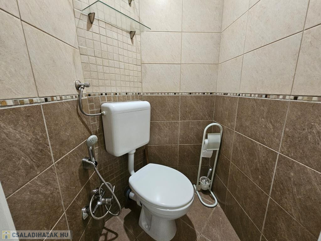 A gyógyvízéről méltán nevezetes Igalban, a fürdőtől 5 perc sétára kínáljuk megvételre ezt a háromszintes, felújított házat. Mindhárom szint egy-egy teljes értékű lakást foglal magában, külön bejárattal rendelkezik, így külön-külön használható, kiadható. A földszinten 77 m2-es lakótér áll rendelkezésre, ahol van egy tágas, világos nappali-étkező, ami a terasz beépítésével jött létre, mellette a jól felszerelt, gépesített konyha, kamra, fürdő zuhanyzóval és káddal, külön WC, mosókonyha, egy háló, plusz egy nagyobb méretű tároló, ami igény szerint szobává alakítható, és az alkotó műhelyként is használatos előtér, valamint a közlekedő, ahonnan minden helyiség nyílik. Az emeletekre külső lépcső vezet. Az első emeleten a nappaliba lépünk, ez a lakosztály központi része, innen nyílik a kellemes terasz, a konyhafülke, a zuhanyzós fürdő a WC-vel, valamint két hálószoba. Itt a lakóterület 43 m2-es, amit megnövel a 11 m2-es terasz. A legfelső szint elrendezése hasonló, csak kicsit kisebb, lakótere 40 m2-es, erkélye 8 m2-es. A teljes ház mind műszakilag, mind esztétikailag fel lett újítva, minden külső nyílászáró hőszigetelt, műanyag keretes, a fűtés saját gázkazánnal működik. A teljes lakótér összesen 160 m2, plusz a két erkély még 19 m2. A vendégház bejáratott vendégkörrel rendelkezik, stabil jövedelmet biztosít. De saját részre, többgenerációs családi házként is megállja a helyét. A telek 285 m2, szépen gondozott. Elhelyezkedése kiváló, a település központi részén, de csendes, nyugodt helyen áll hasonló funkciójú házak, kertek között. A megyeszékhely, Kaposvár autóval fél óra, a Balaton szintén ennyi idő alatt érhető el. A gyógyfürdő télen-nyáron üzemel, a vendégház egész évben, folyamatosan kihasználható.