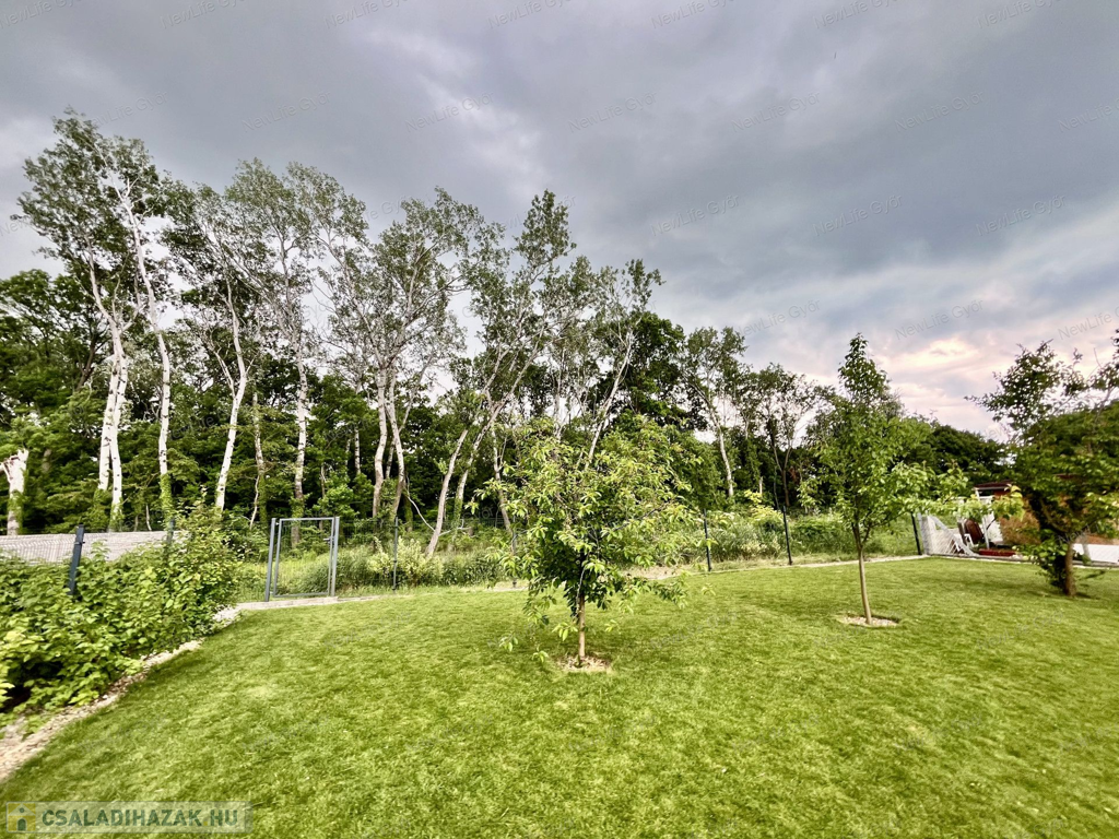 A kert gyönyörűen parkosított, öntözőrendszer és robotfűnyíró segíti a mindennapokat! Egy kis tároló melléképület is található benne.