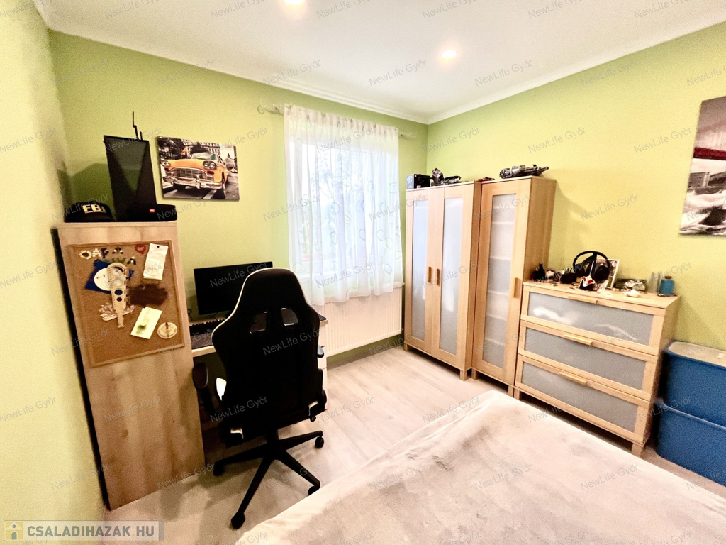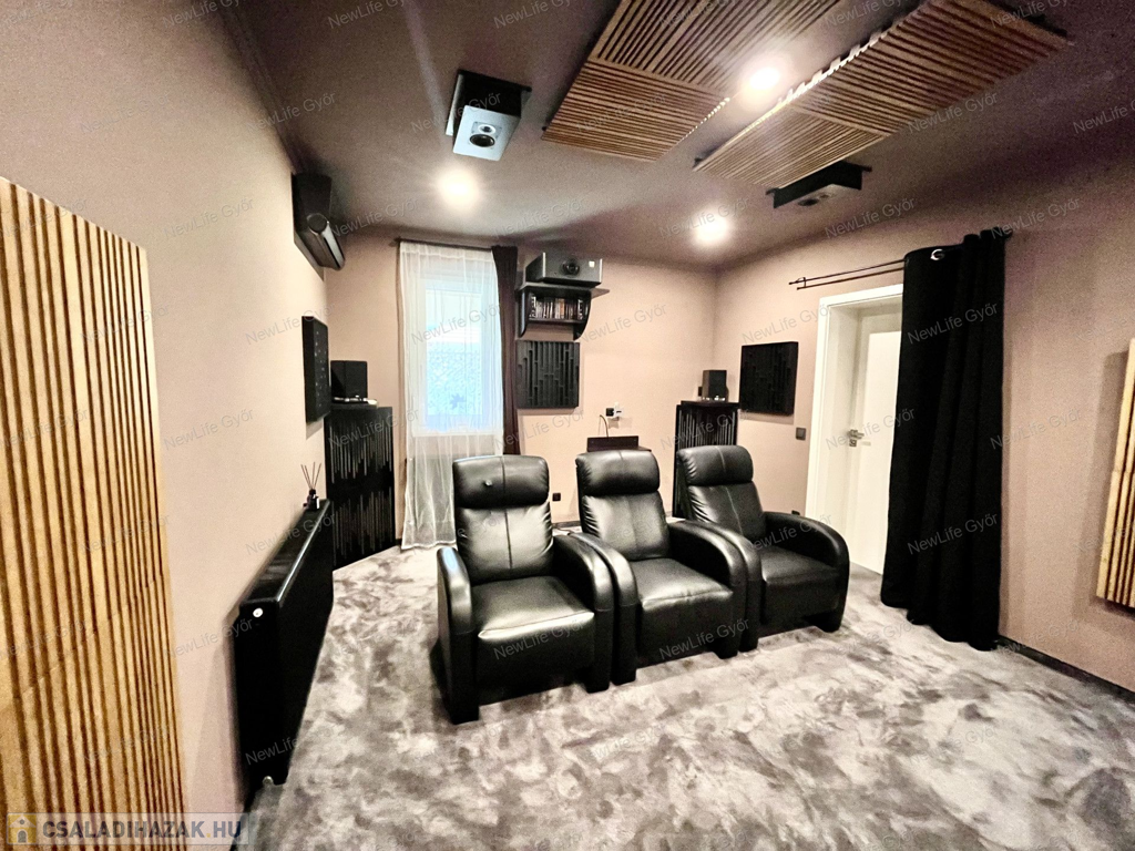 A házban nappali+ 4 szoba található. Jelenleg 3 hálószoba van,mindegyik szép, világos, kényelmes méretű. A negyedik szoba jelenleg moziszoba egy egyedileg kialakított, minőségi anyagokkal kivitelezett. A vastag szőnyeg, hangszigetelt falak, beépített hangfalak, kényelmes fotelek, vetítőgép. A szobát egyébként könnyedén át lehet alakítani rendes hálószobává.