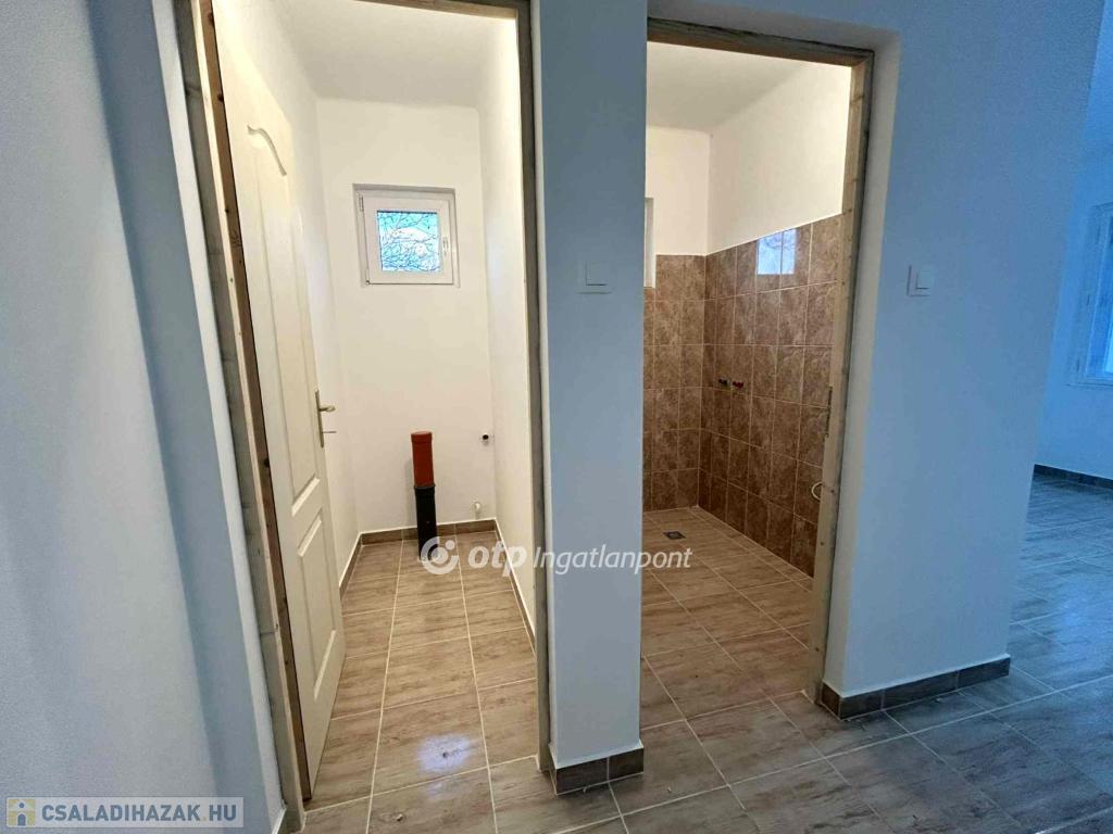 A házban több helyiség friss burkolatot kapott: a konyha, a WC és a fürdőszoba új csempével készült, két szobában laminált padló található, a harmadik szoba, valamint a közlekedők és az előtér pedig frissen betonozott aljzattal rendelkeznek. A villanyvezetékek részleges cseréje megtörtént, a vizesblokkok kialakítása folyamatban van, WC-vel, zuhanyzóval és kézmosóval kerül átadásra. A ház rákötött a szennyvízhálózatra, a falak frissen festettek, szárazak, így azonnal költözhető állapotú.